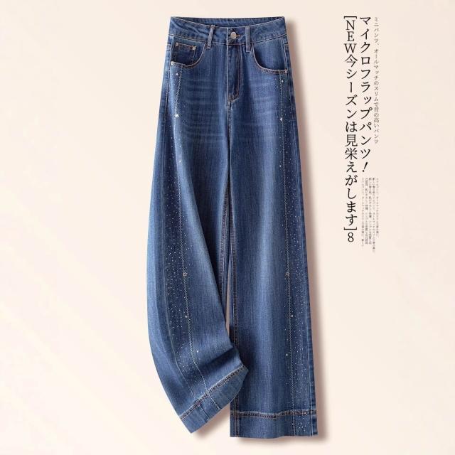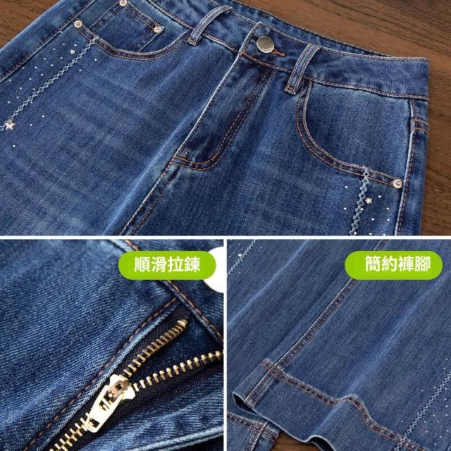 免運 藍色燙鉆直筒牛仔褲女春秋2026新款垂感寬鬆小個子九分窄版闊腿褲
