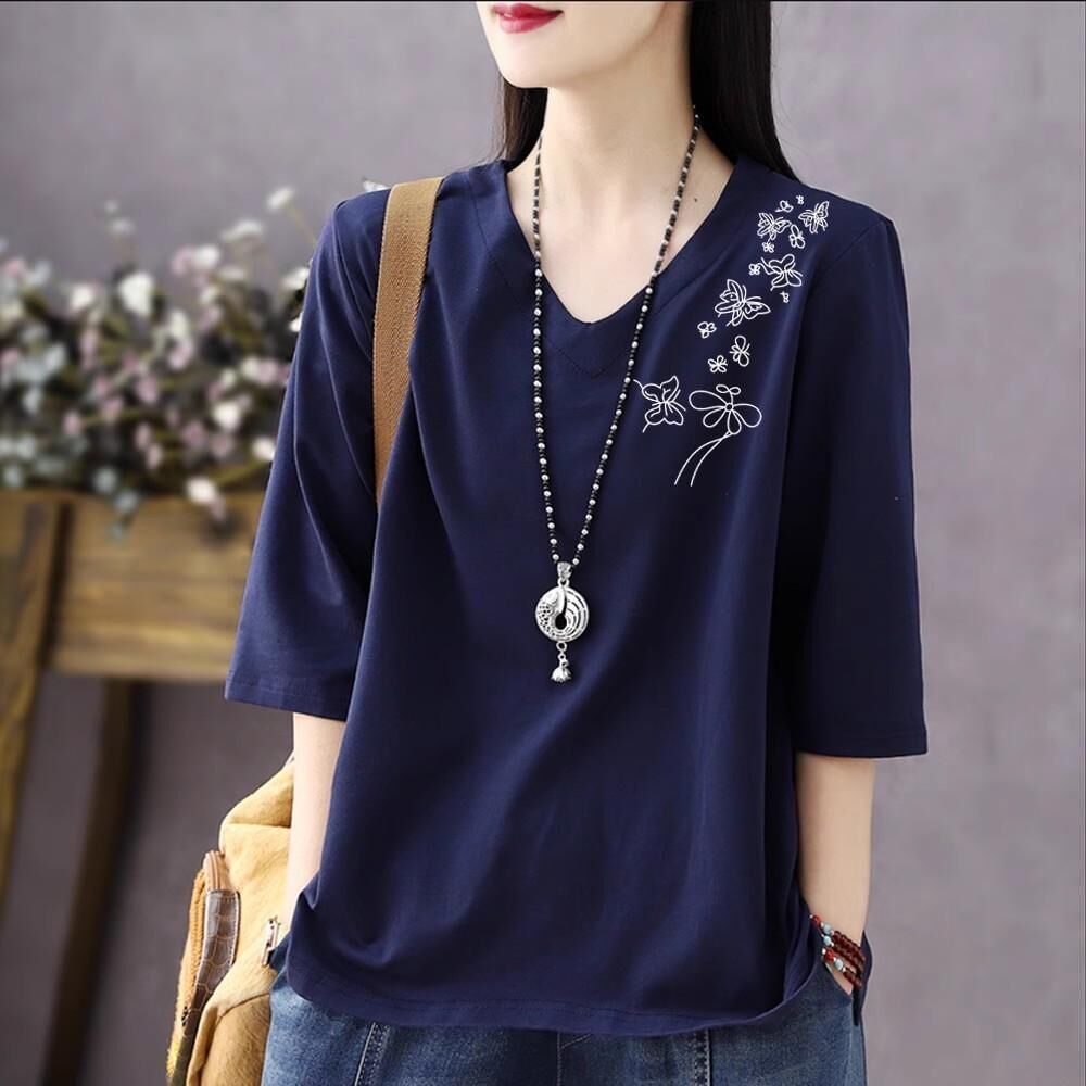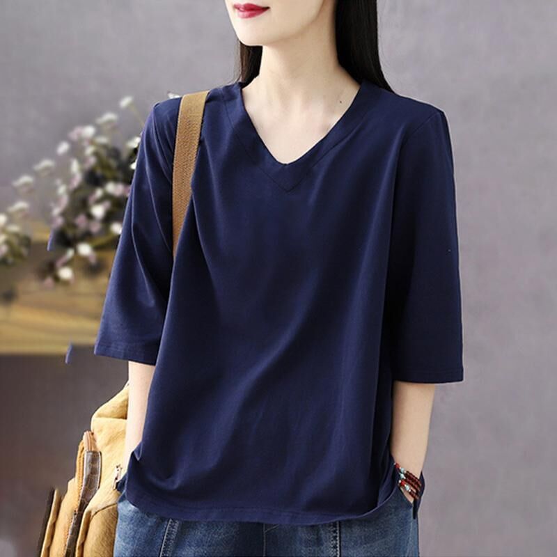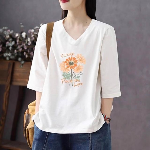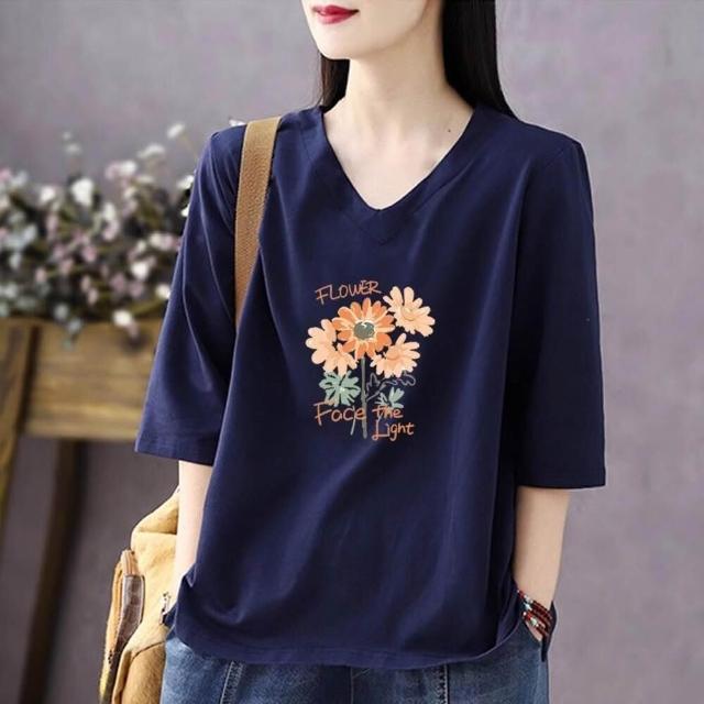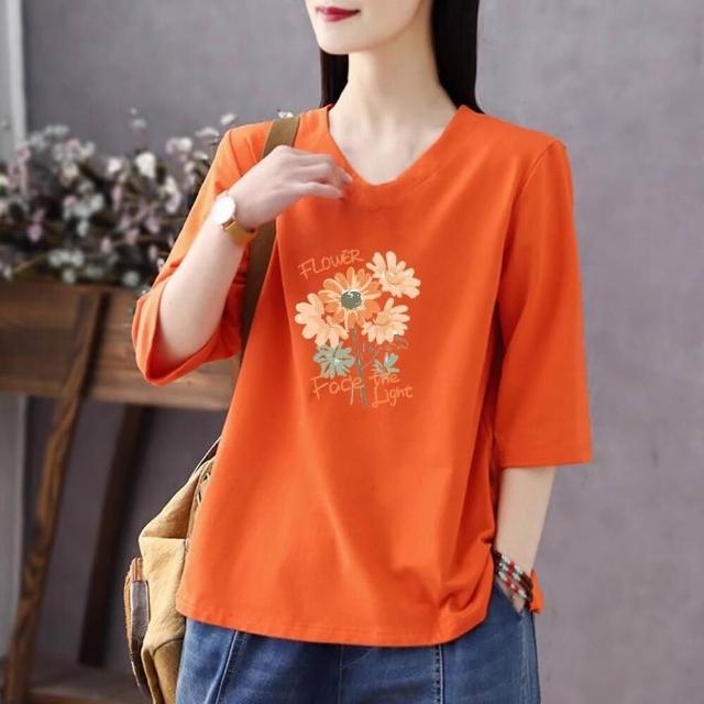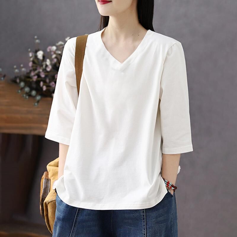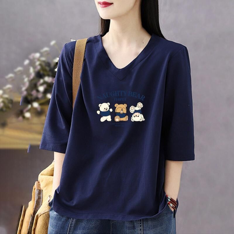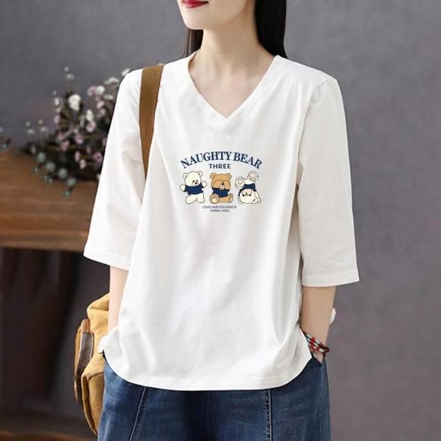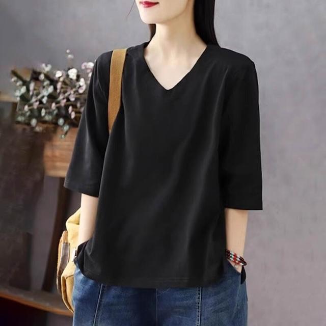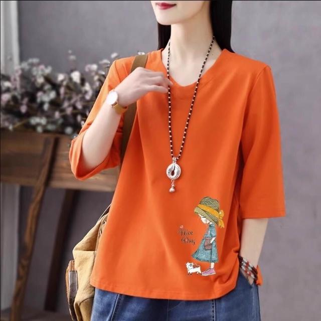 免運 純色棉短袖t恤女2026夏新款休閒時尚百搭棉卡通七分袖打底衫