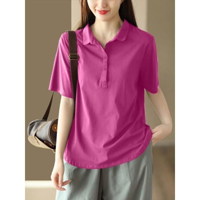 免運 棉質Polo領短袖t恤女寬鬆大碼夏季新款純色簡約休閒百搭上衣