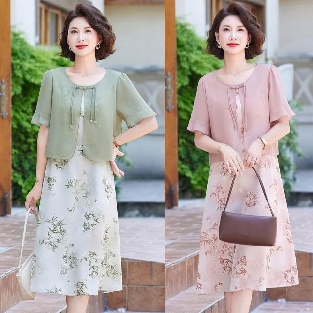 免運 媽媽夏裝新中式假兩件連衣裙2026新款洋氣質中老年女國風雪紡裙子