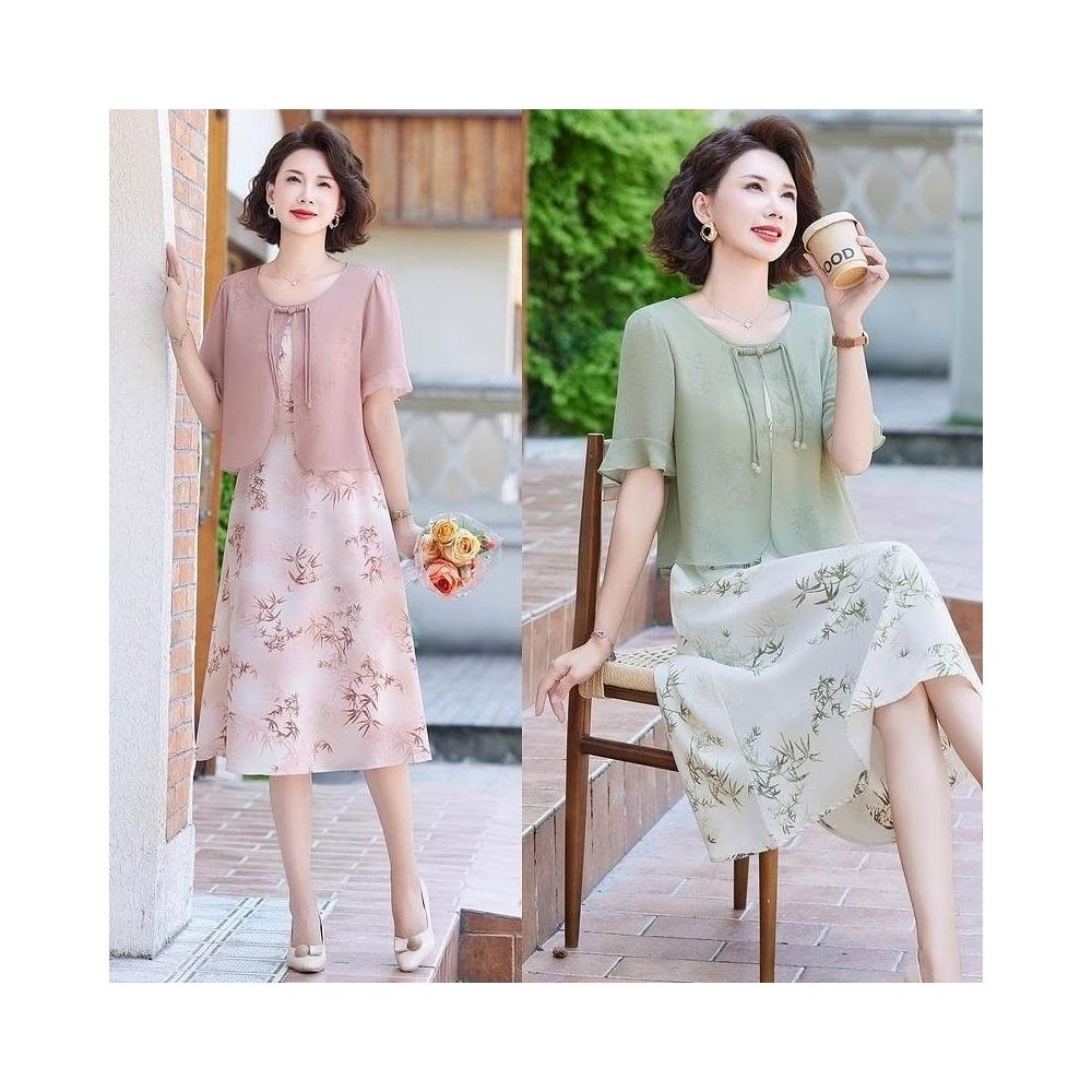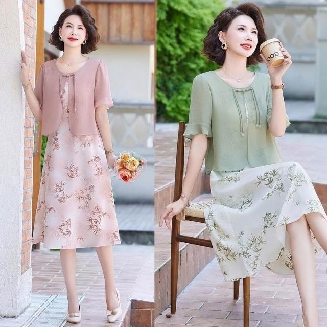 免運 媽媽夏裝新中式假兩件連衣裙2026新款洋氣質中老年女國風雪紡裙子