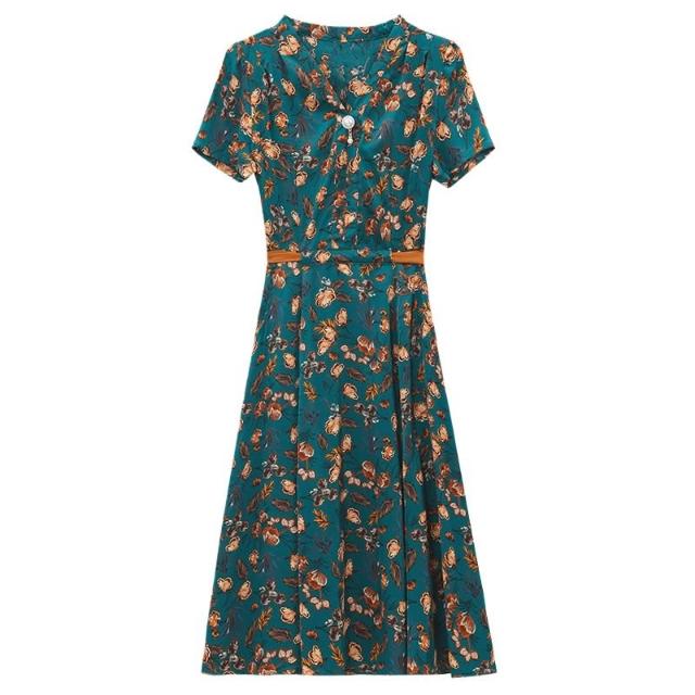 免運 媽媽夏裝V領時尚連衣裙母親節中老年女洋氣短袖裙子氣質碎花