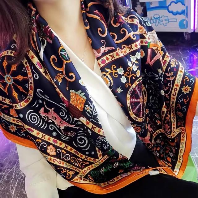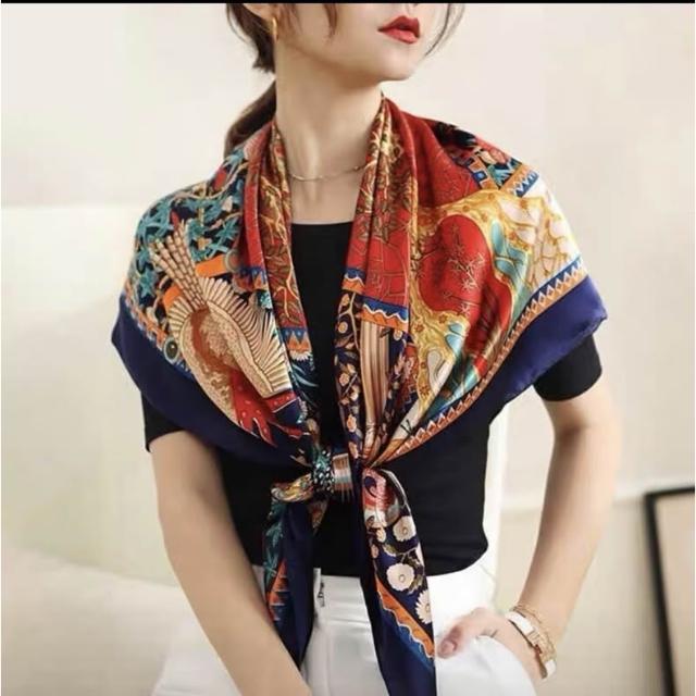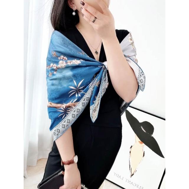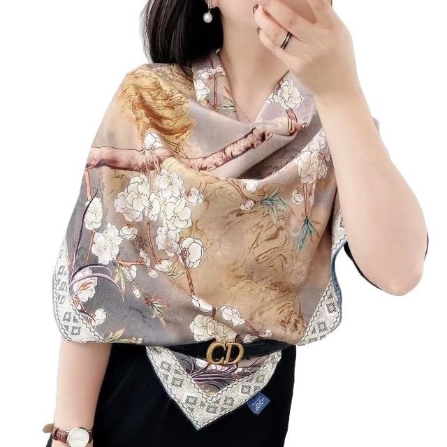 免運 純真絲110大方巾絲巾100%桑蠶絲圍巾油畫女媽媽防曬披肩絲綢禮物