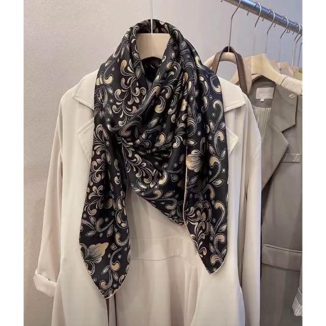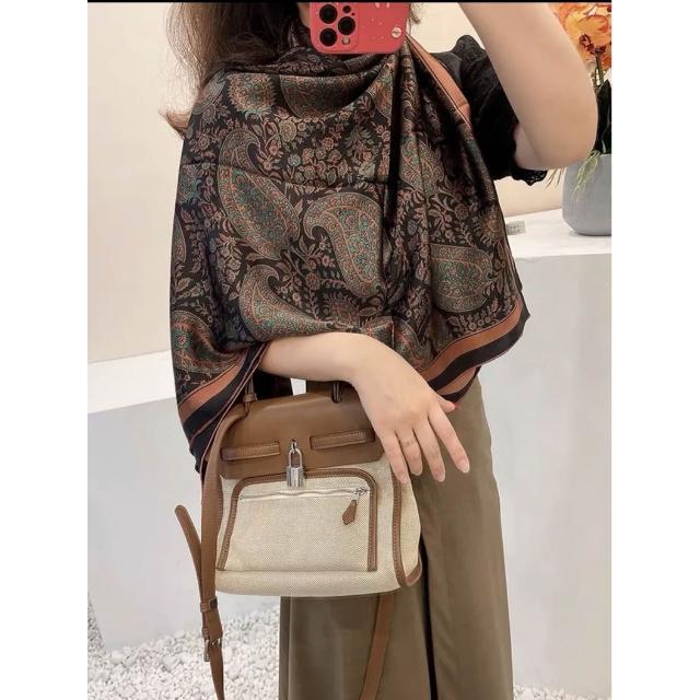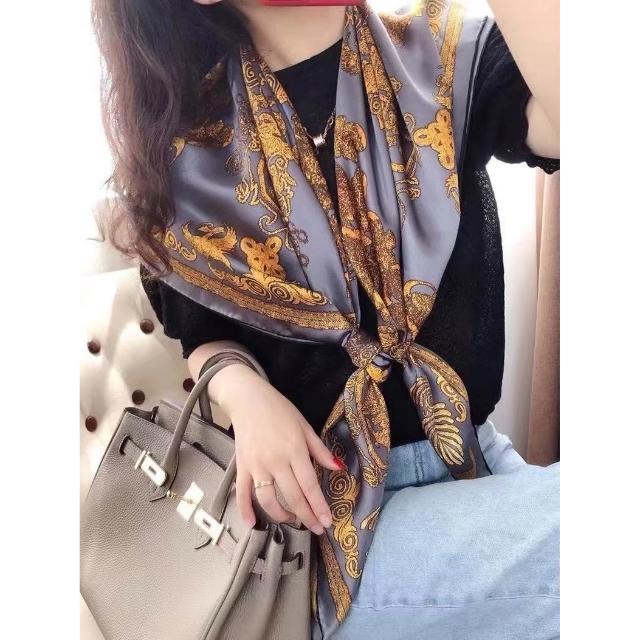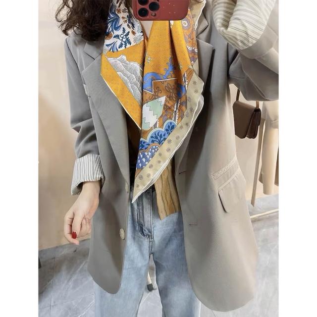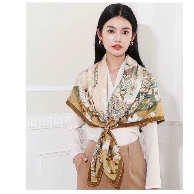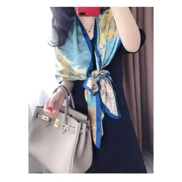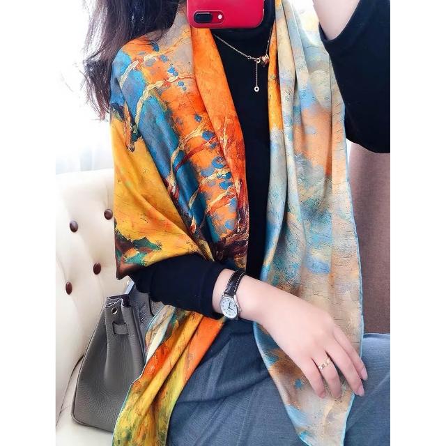 免運 純真絲110大方巾絲巾100%桑蠶絲圍巾油畫女媽媽防曬披肩絲綢禮物