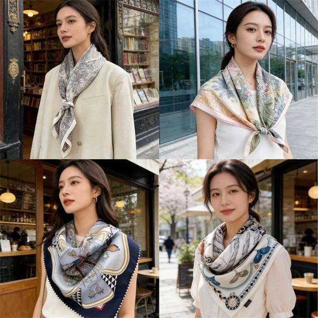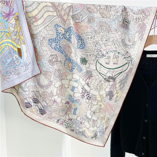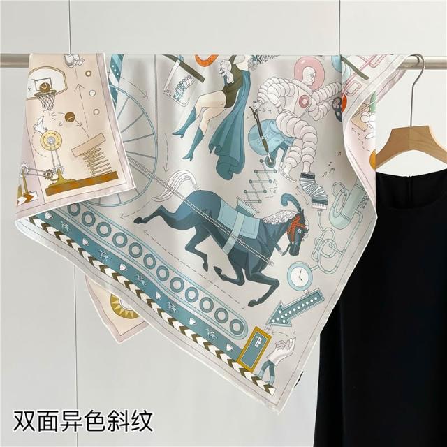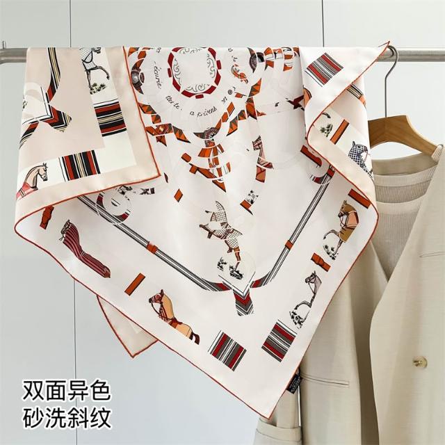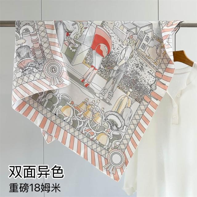免運 18姆米砂洗斜紋真絲絲巾女桑蠶絲雙面印花大方巾披肩秋冬保暖圍巾