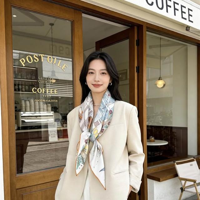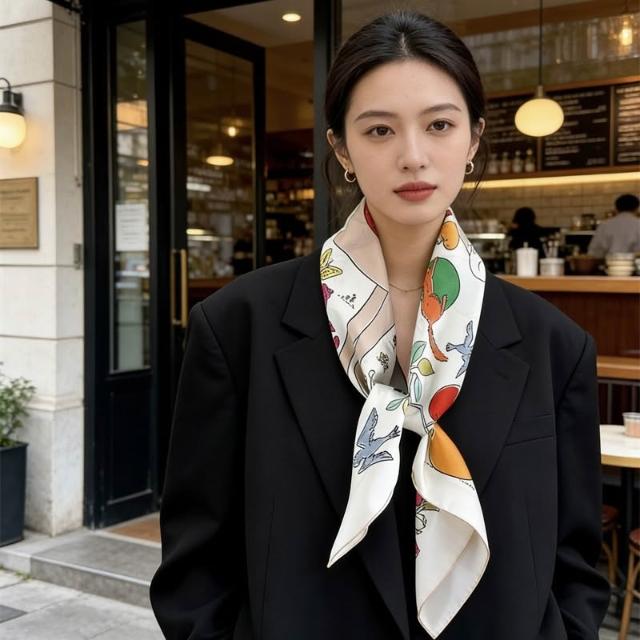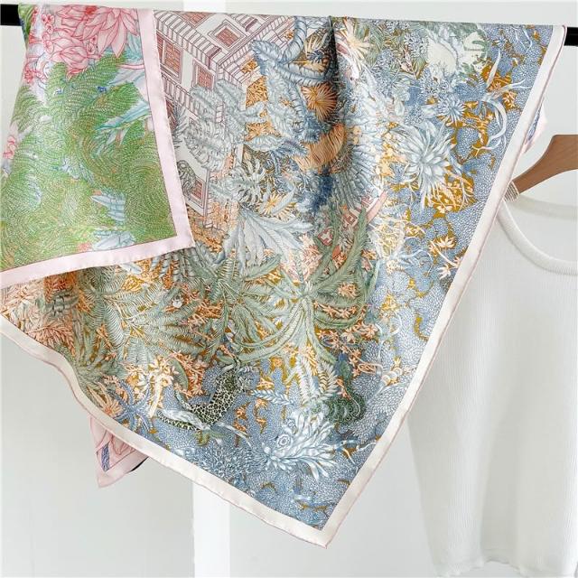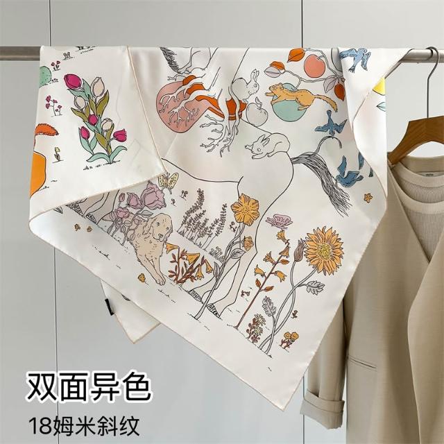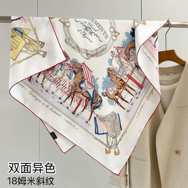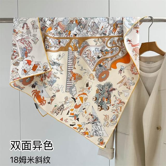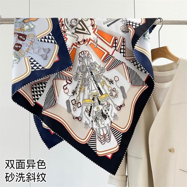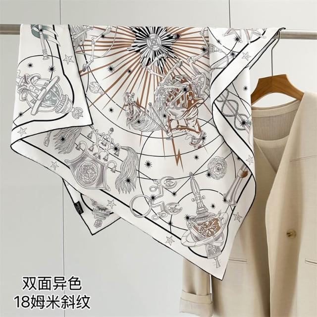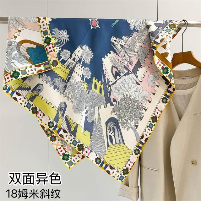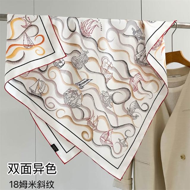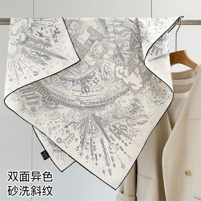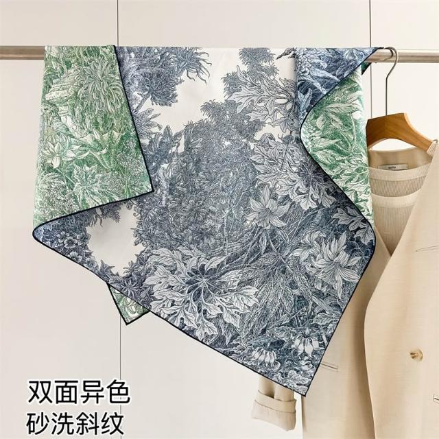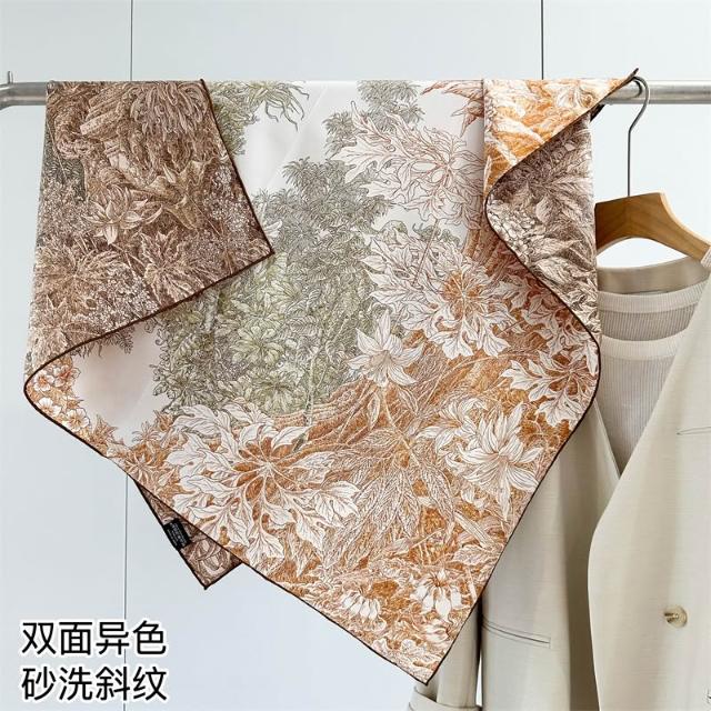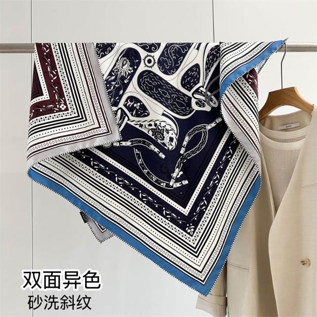 免運 18姆米砂洗斜紋真絲絲巾女桑蠶絲雙面印花大方巾披肩秋冬保暖圍巾