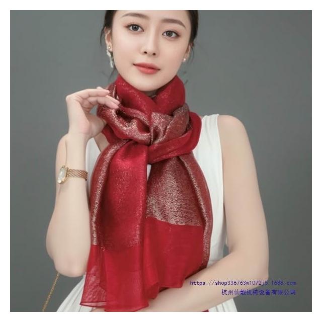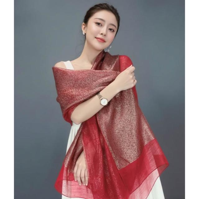 免運 雙層酒紅色真絲絲巾金絲圍巾禮服旗袍披肩媽媽長秋冬