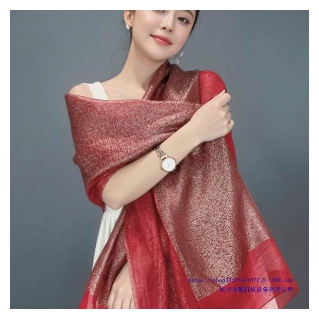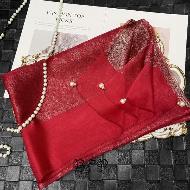 免運 雙層酒紅色真絲絲巾金絲圍巾禮服旗袍披肩媽媽長秋冬