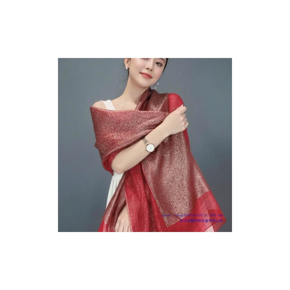 免運 雙層酒紅色真絲絲巾金絲圍巾禮服旗袍披肩媽媽長秋冬