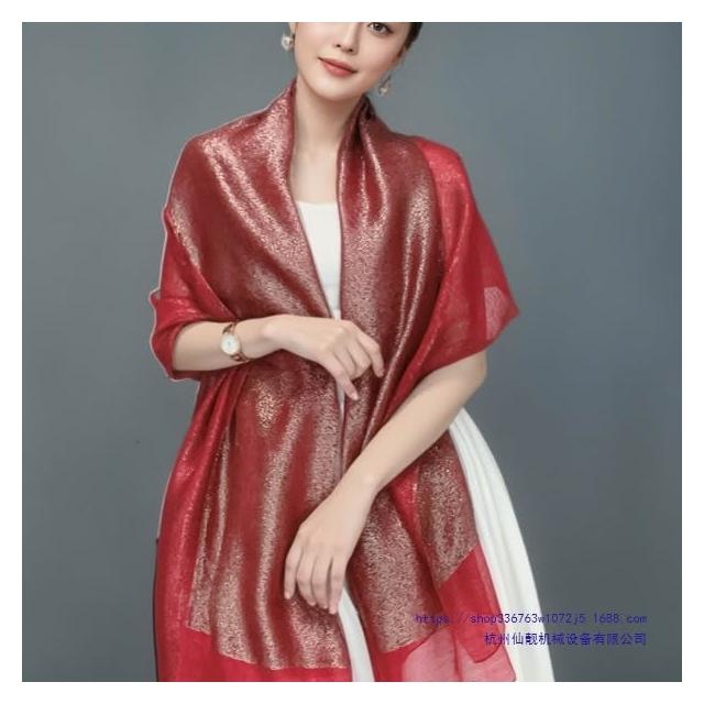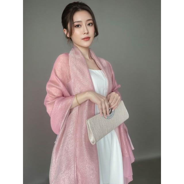 免運 雙層酒紅色真絲絲巾金絲圍巾禮服旗袍披肩媽媽長秋冬