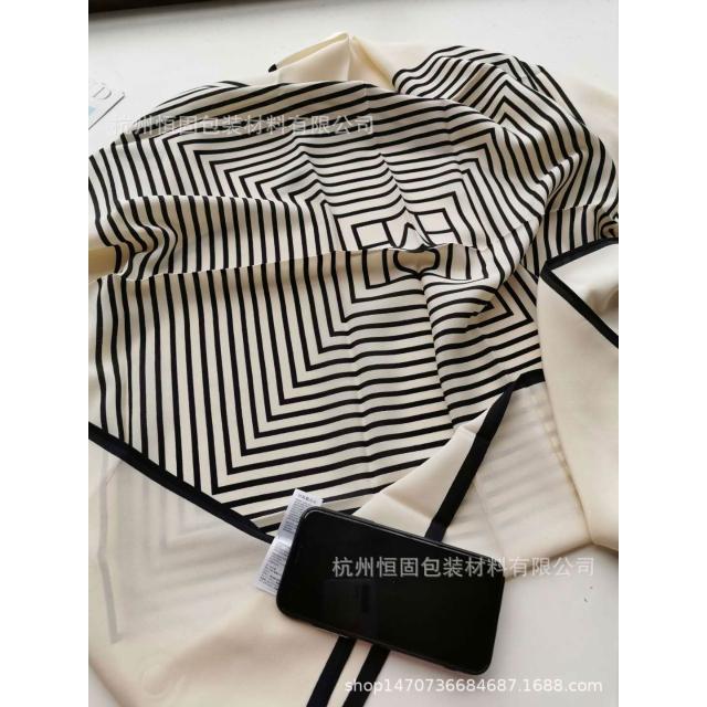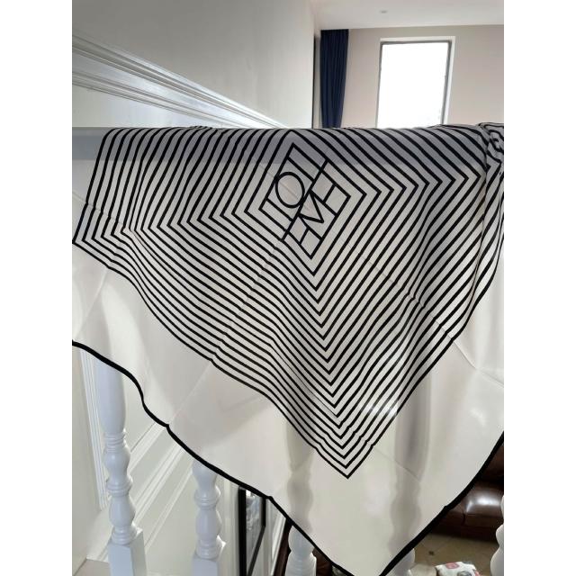 免運 黑白經典幾何條紋北歐風小眾雙绉ins真絲方巾絲巾披肩