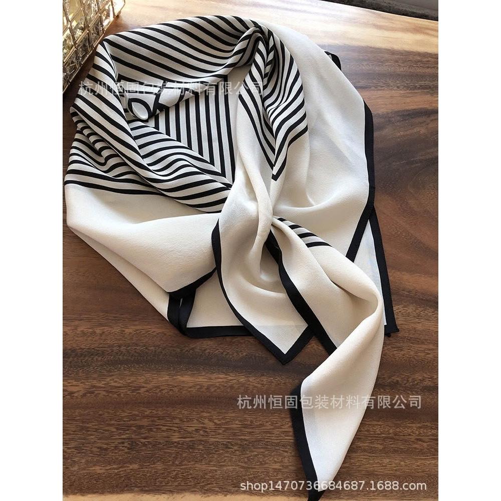 免運 黑白經典幾何條紋北歐風小眾雙绉ins真絲方巾絲巾披肩