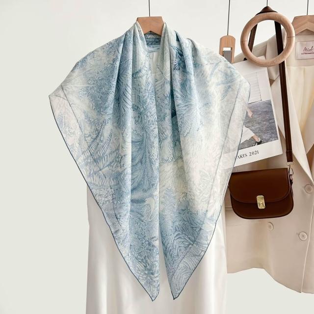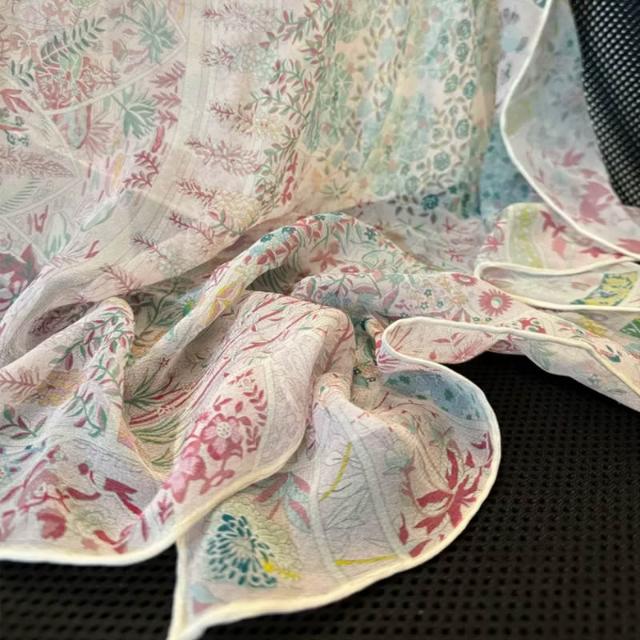 免運 小清新真絲絲巾12mm花朵輕奢高檔印花輕薄透氣百搭披肩圍巾