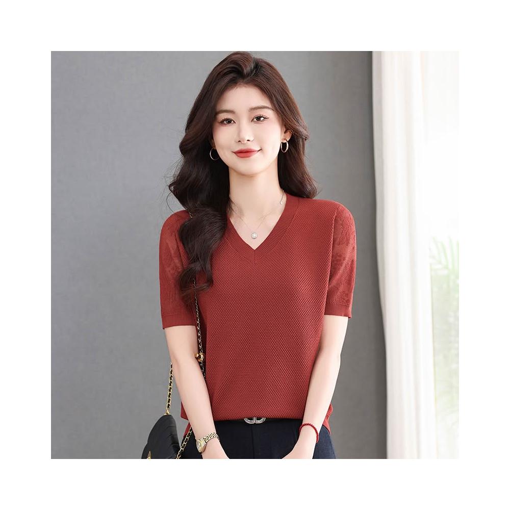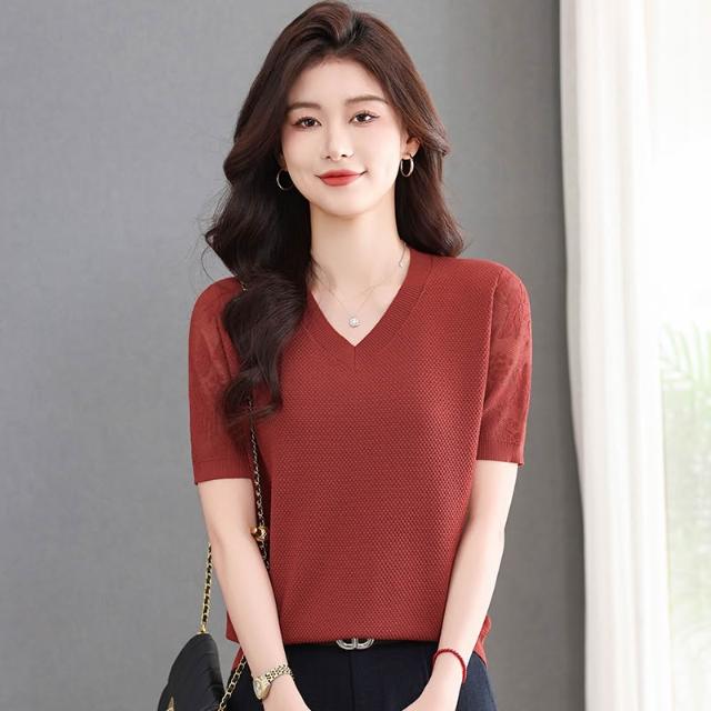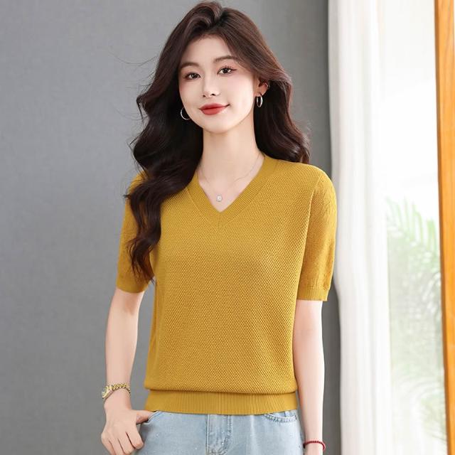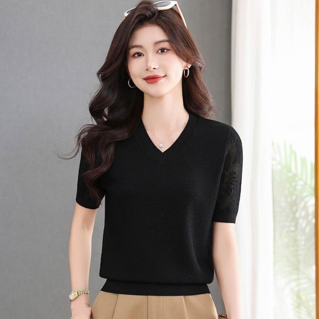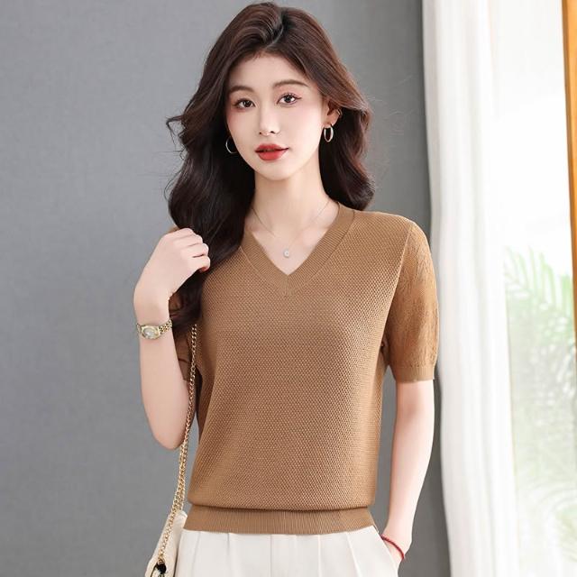 免運 冰絲針織衫短袖t恤女中年媽媽洋氣夏裝2026新款夏季薄遮肚子上衣