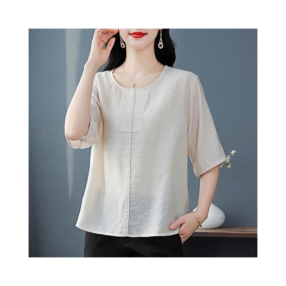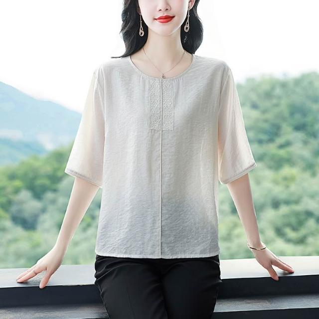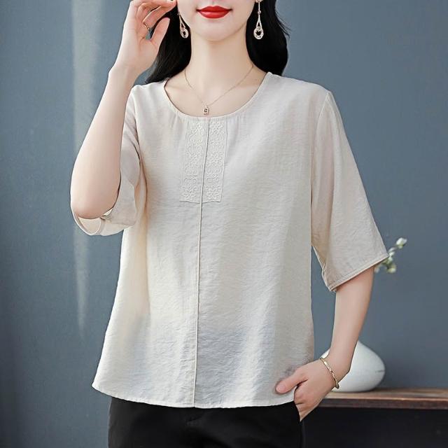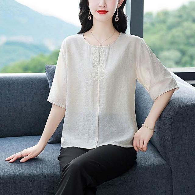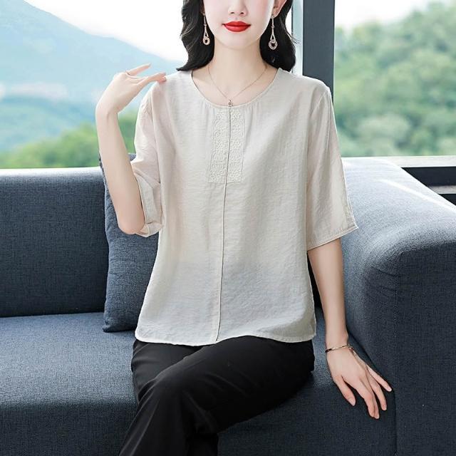 免運 棉麻短袖體t恤女2026夏裝新款時尚寬鬆遮肚中年媽媽休閒小衫