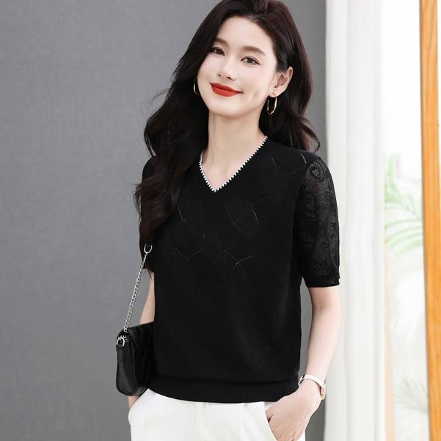 免運 V領冰絲短袖體恤女2026夏季短袖針織體恤衫寬鬆大碼遮肉女上衣