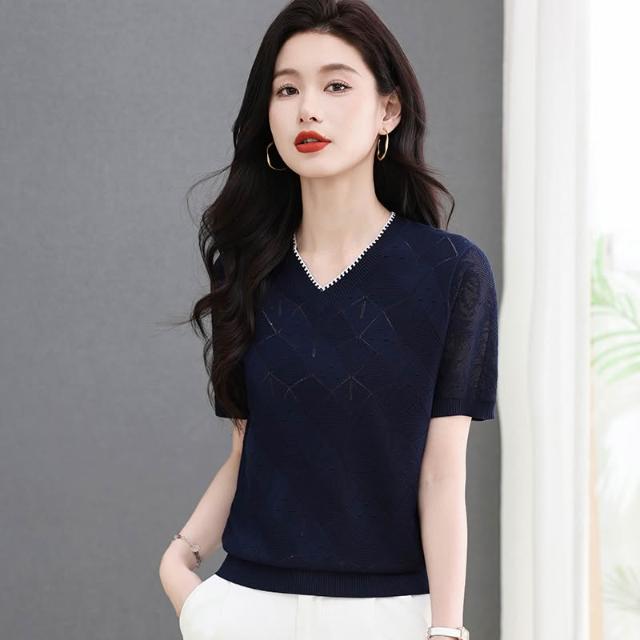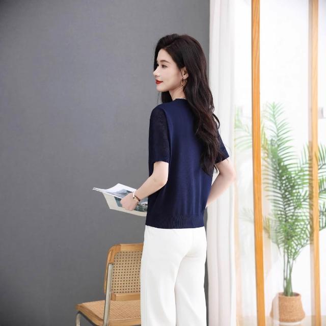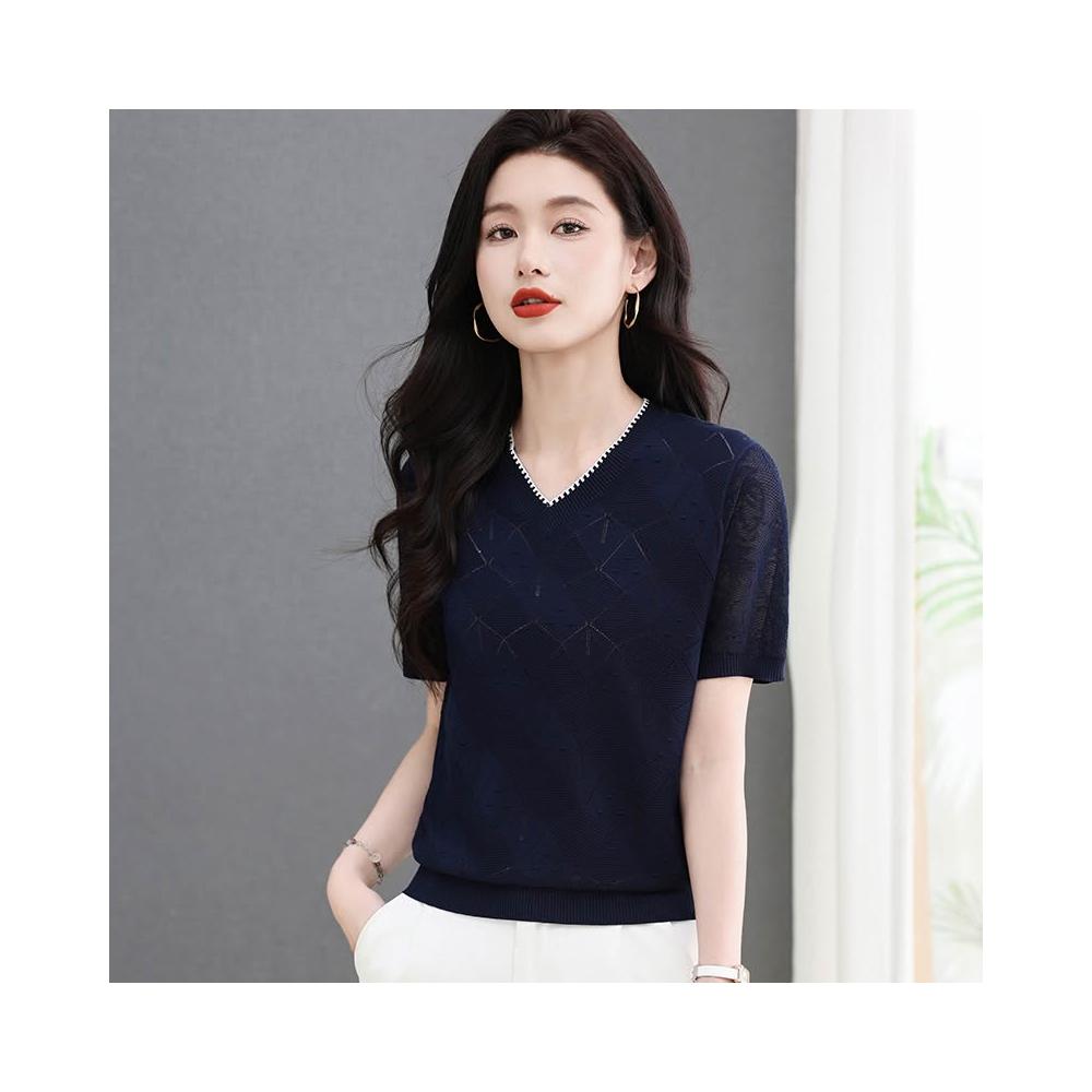 免運 V領冰絲短袖體恤女2026夏季短袖針織體恤衫寬鬆大碼遮肉女上衣