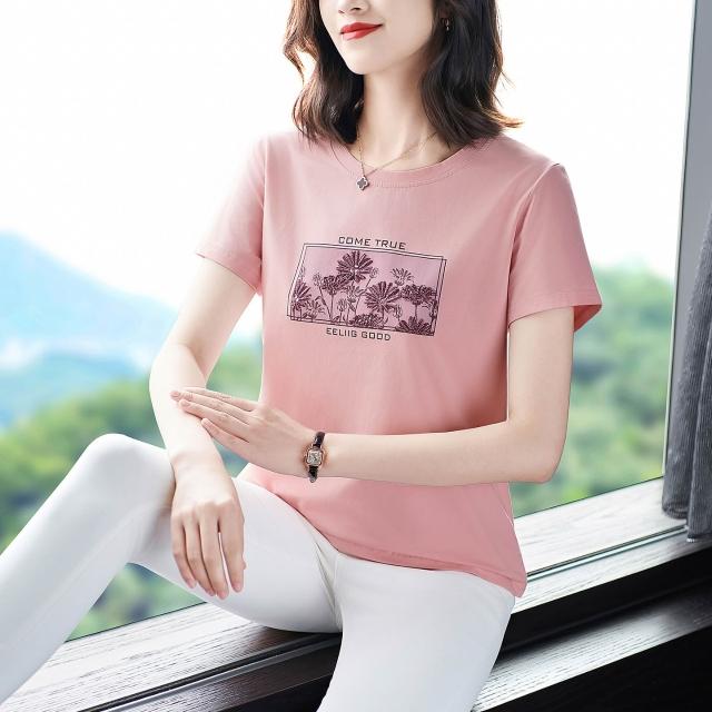 免運 時尚重工刺繡花t恤女夏新款大碼寬鬆洋氣中年媽媽裝短袖襯衫體恤