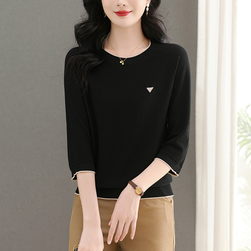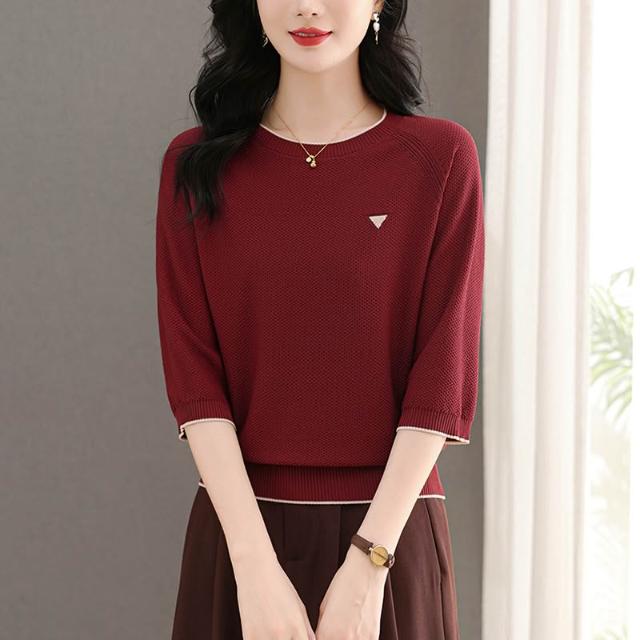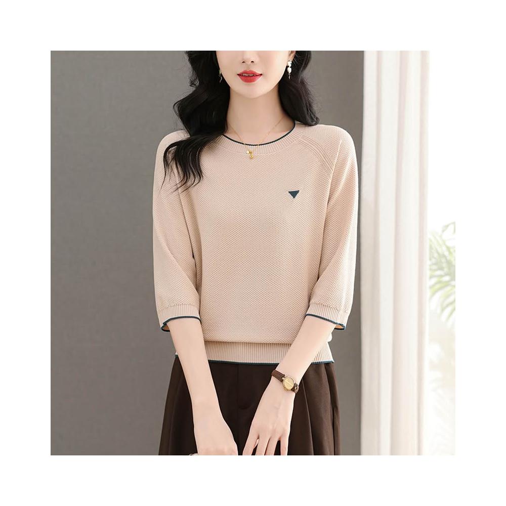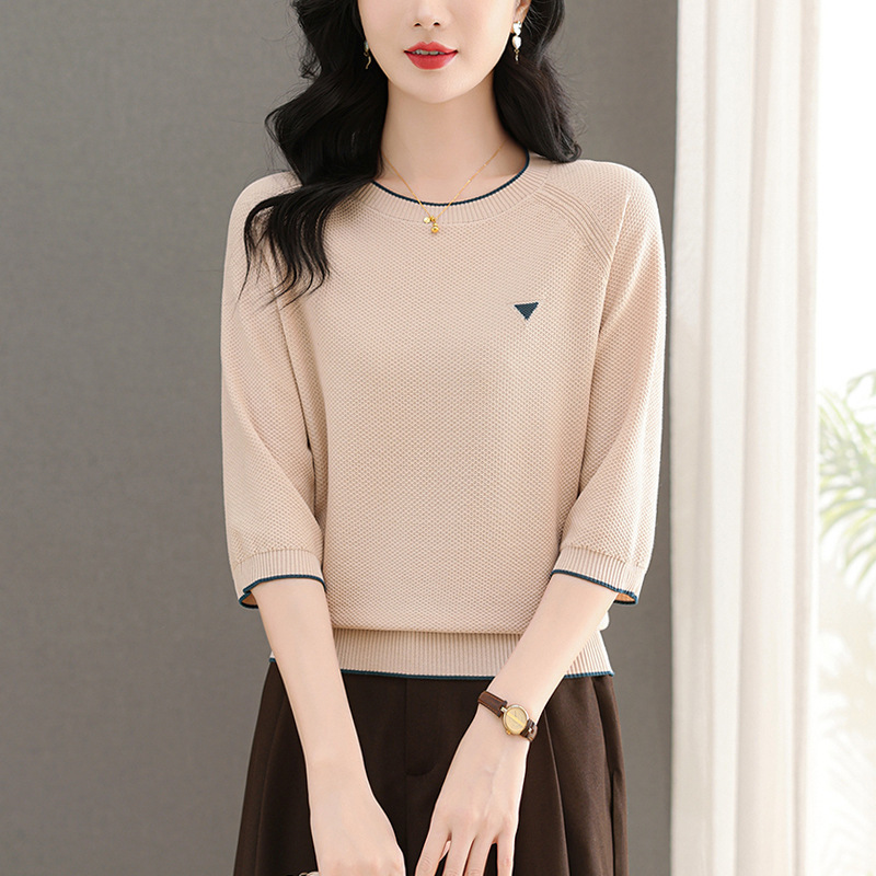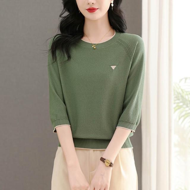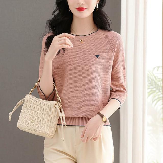 免運 冰絲t恤女七分袖上衣媽媽春裝2026年新款早春針織寬鬆打底衫春秋
