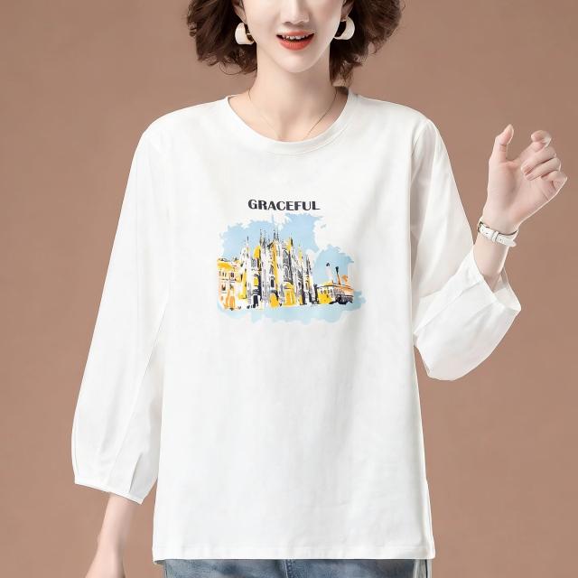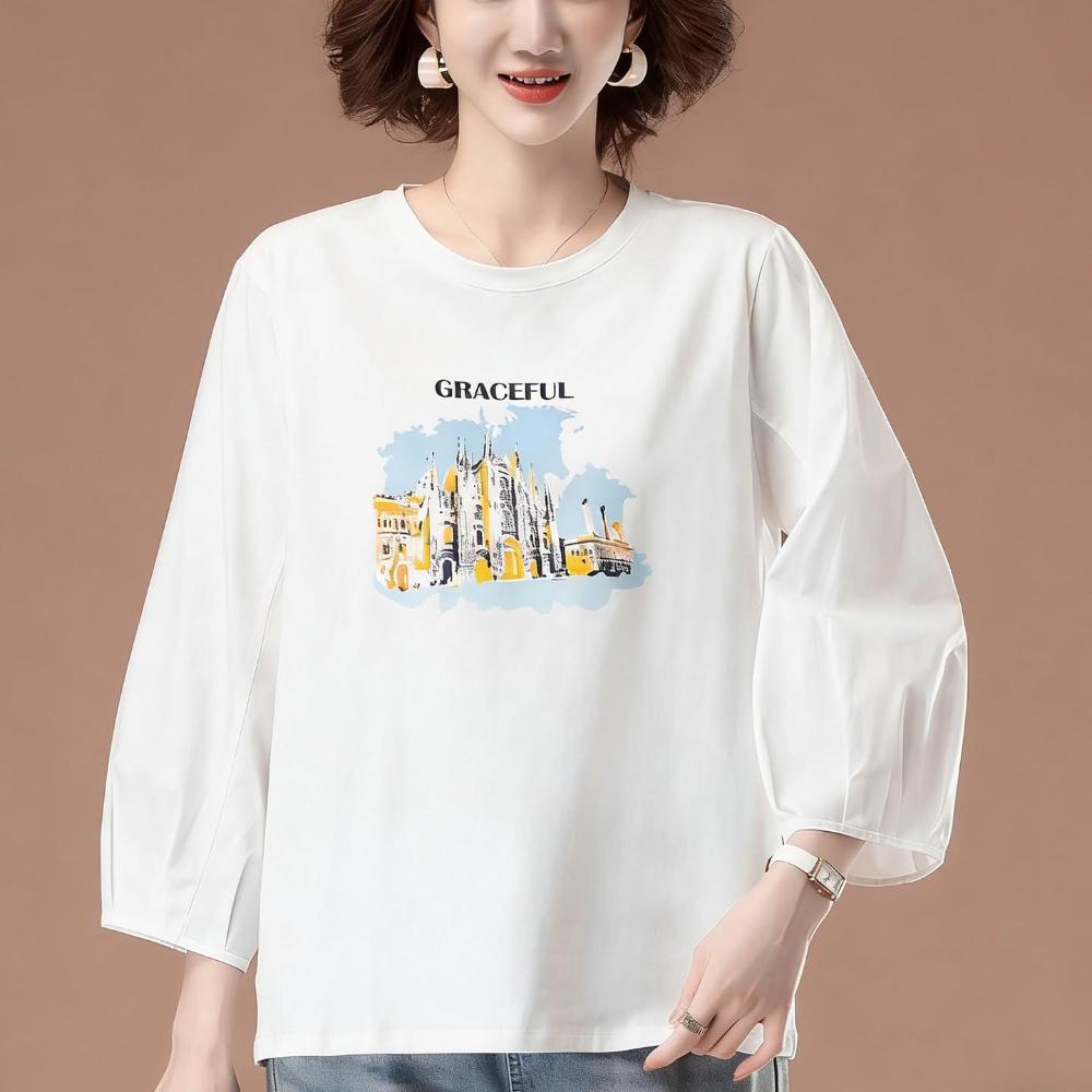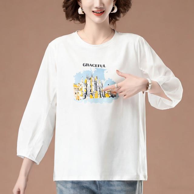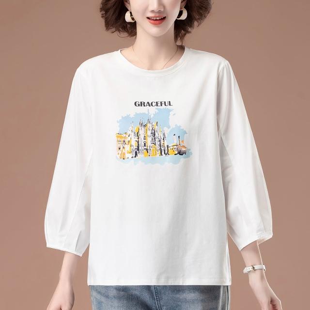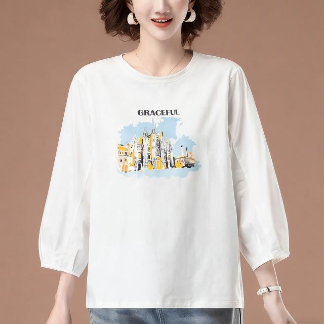 免運 中年媽媽純棉七分袖t恤女中袖寬鬆遮肚上衣洋氣加肥加大碼打底衫