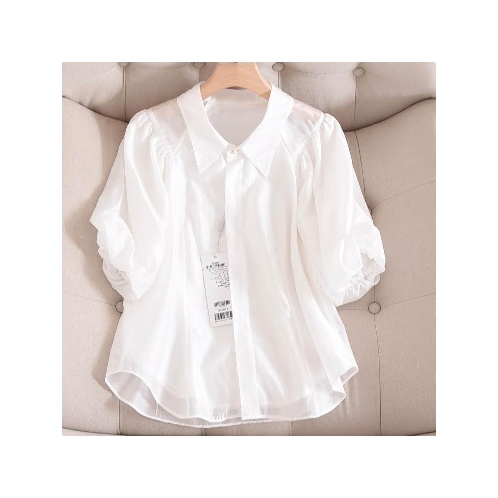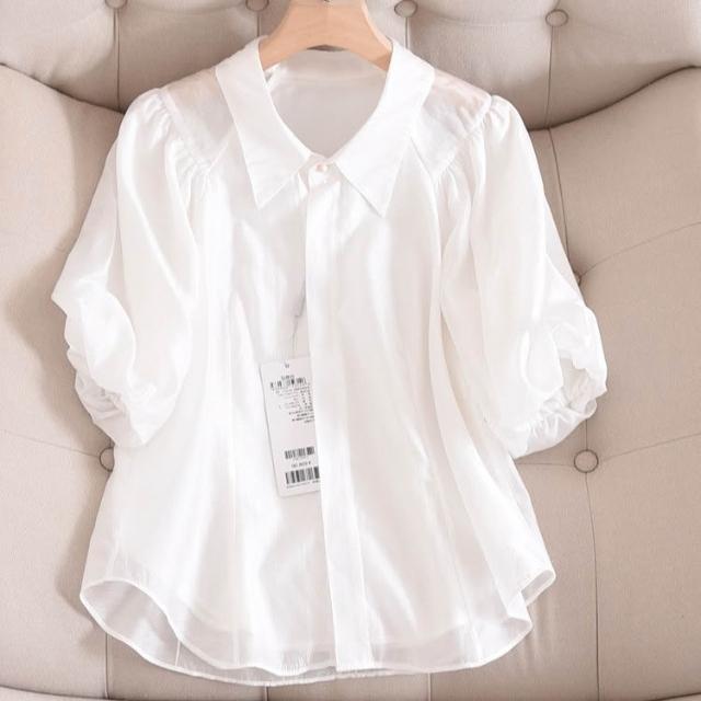 女式新款輕熟法式優雅泡泡袖上衣白色短袖襯衫女裝夏季設計感小眾
