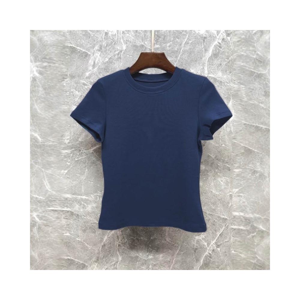 藏青色純棉圓領正肩短袖t恤女修身夏季2025新款基礎顯瘦體恤上衣