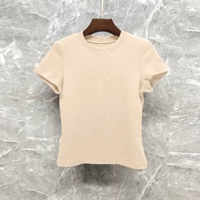 藏青色純棉圓領正肩短袖t恤女修身夏季2025新款基礎顯瘦體恤上衣