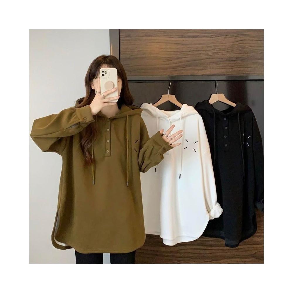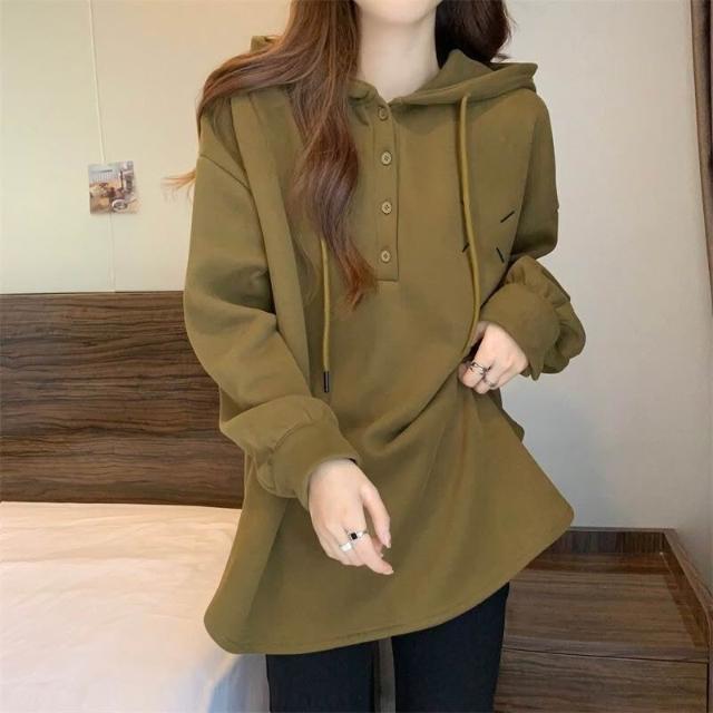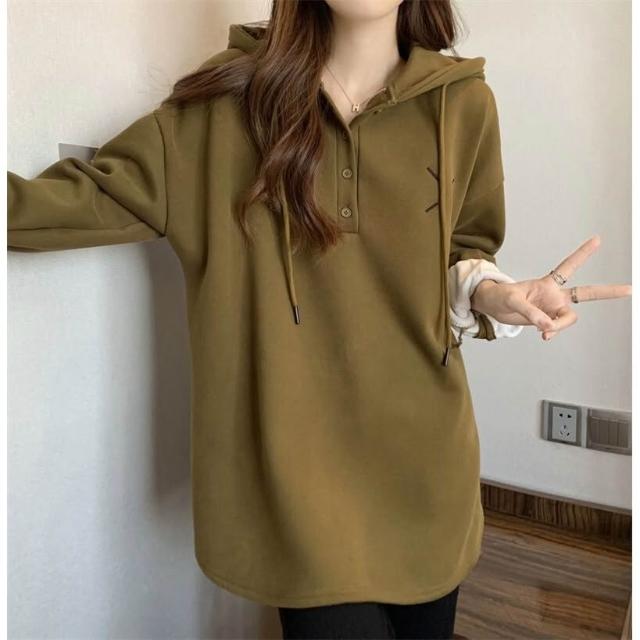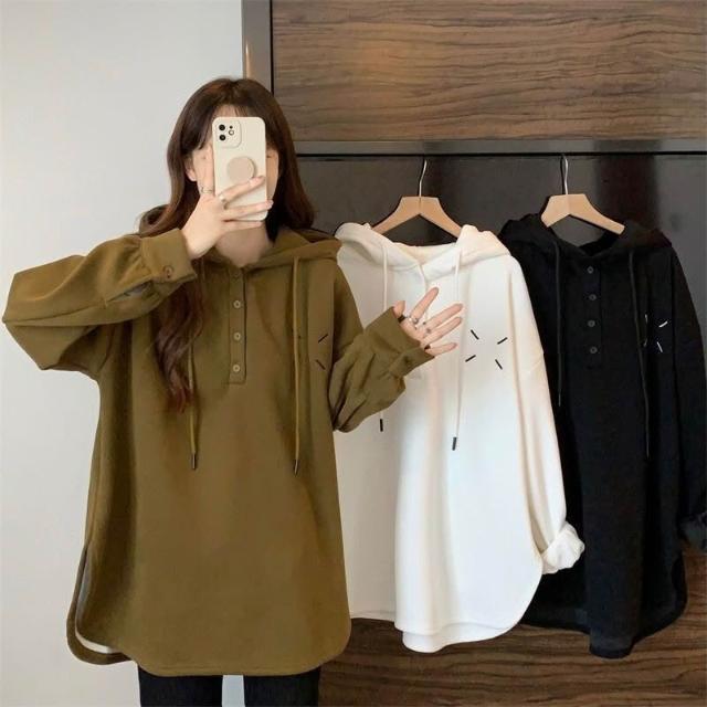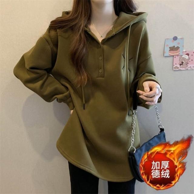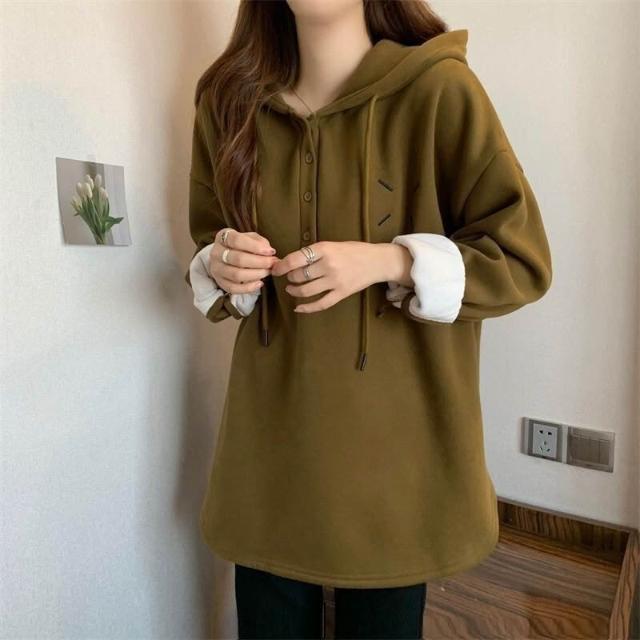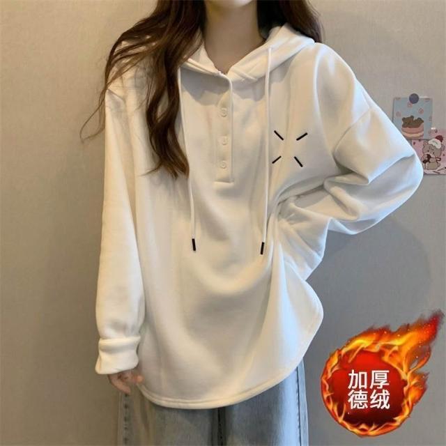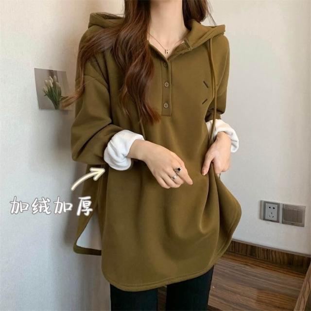 雙麵德絨帽T 上衣 帽T 衛衣 連帽衛衣 紐扣設計連帽長袖女秋冬新