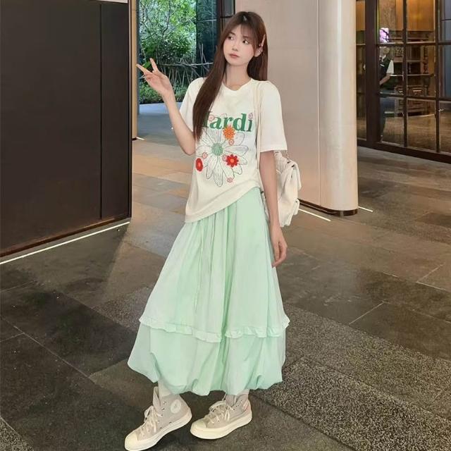 2026新款防曬花苞裙女夏慵懶風寬松蓬蓬休閑裙高腰遮肉半身裙長裙