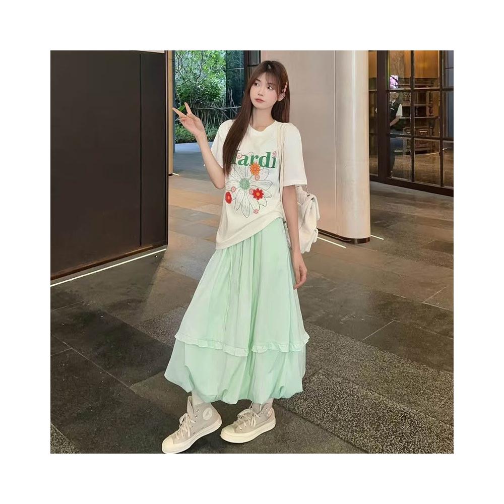 2026新款防曬花苞裙女夏慵懶風寬松蓬蓬休閑裙高腰遮肉半身裙長裙