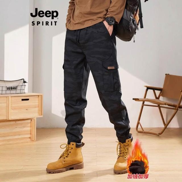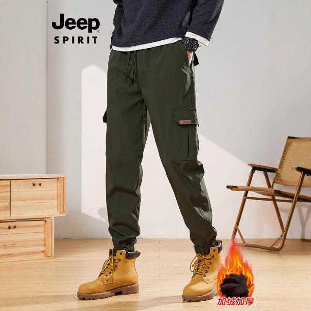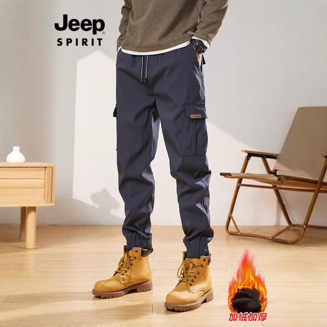 Jeep spirit 工裝褲男秋冬季沖鋒褲機能加絨戶外運動男褲子多口袋