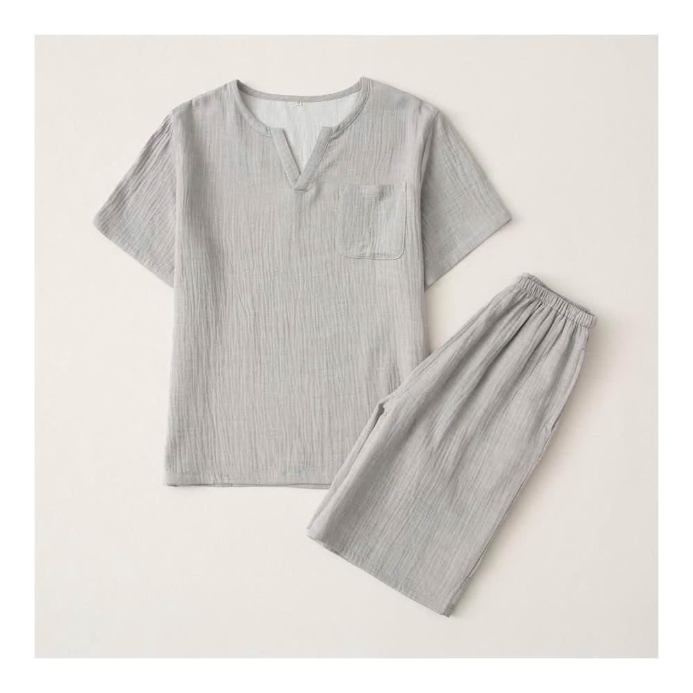 免運春秋全棉雙層紗布縐紗日系簡約男士長袖短袖睡衣套裝純棉家居服