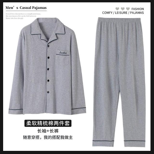 免運特大碼春秋季純棉睡衣男胖子長袖開衫套裝超大號200-330斤家居服