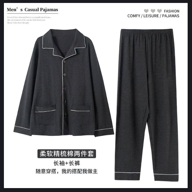 免運特大碼春秋季純棉睡衣男胖子長袖開衫套裝超大號200-330斤家居服