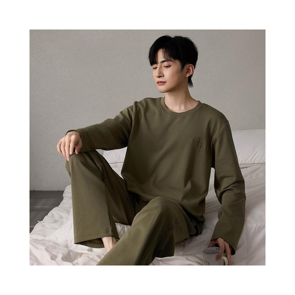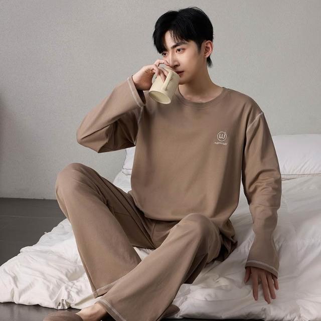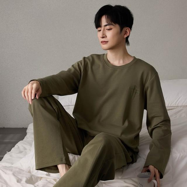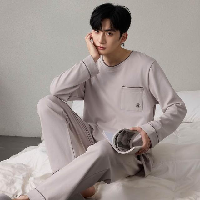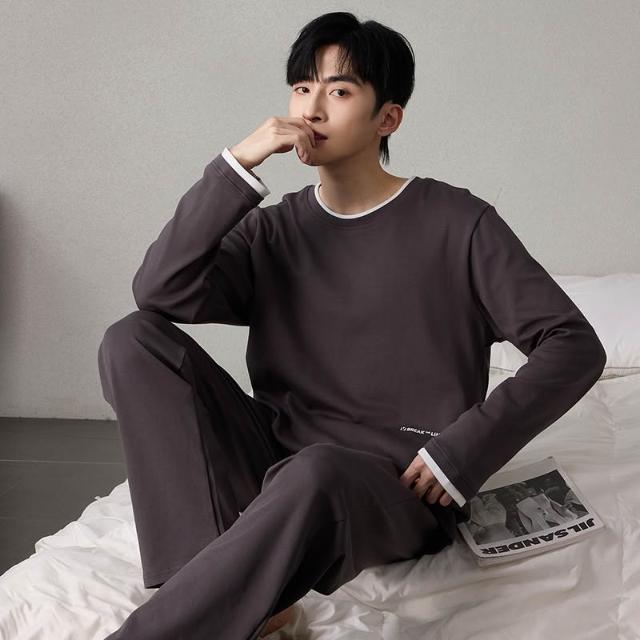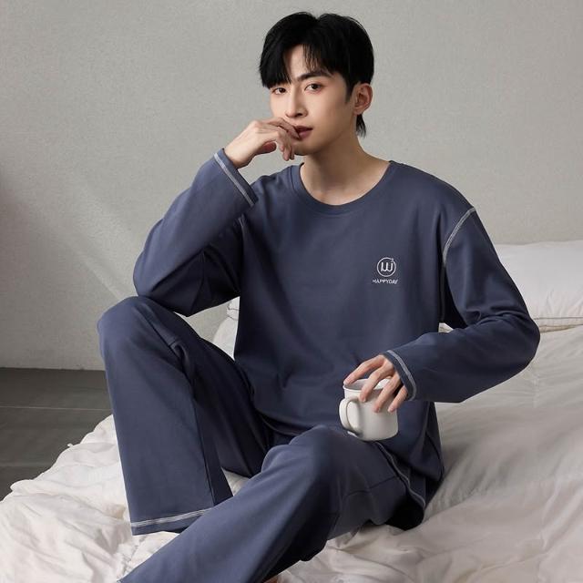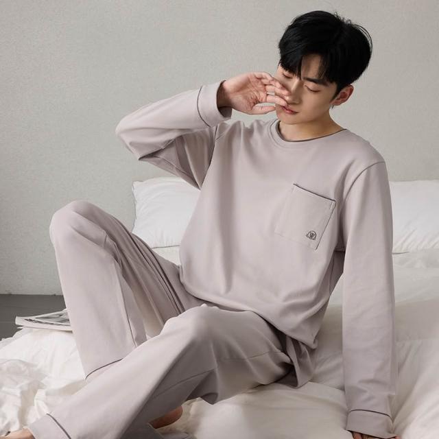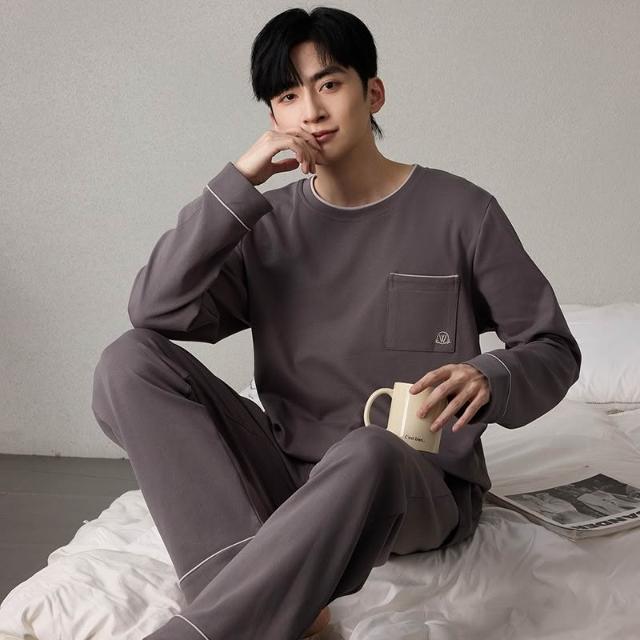 免運純棉男士睡衣長袖長褲秋冬季全棉家居服男款青年成年人套裝可外穿