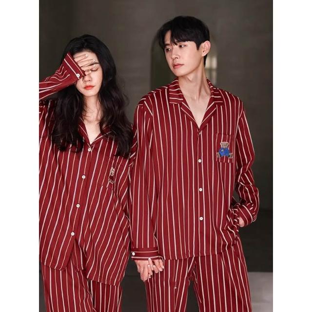 免運貝妍同款純棉紅色情侶睡衣新婚結婚套裝春秋季長袖薄款男女家居服