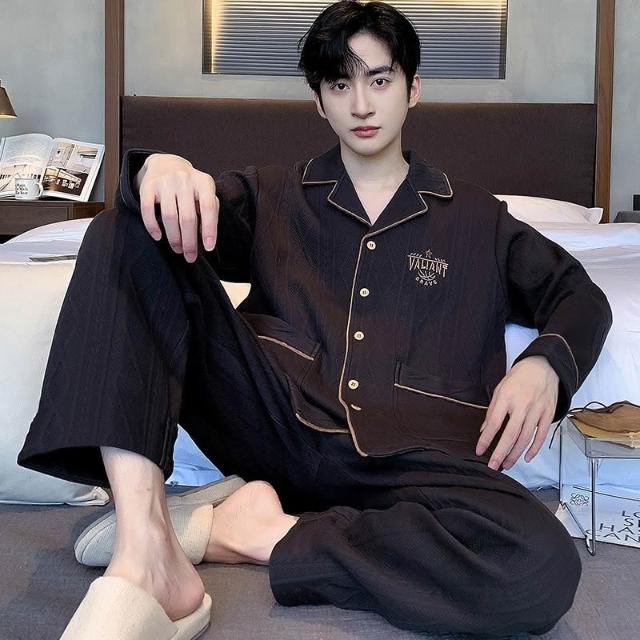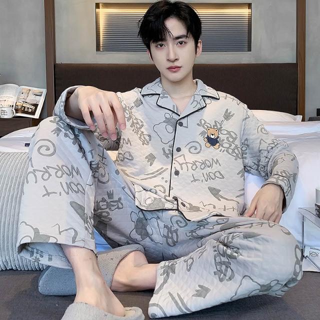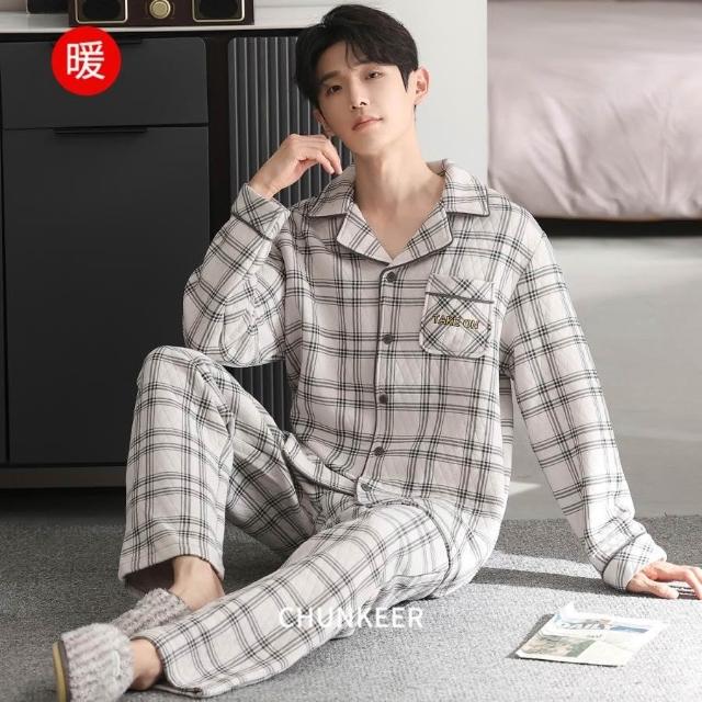 免運男款睡衣秋冬款加厚純棉夾層休閑保暖可外出冬季新品家居服套裝