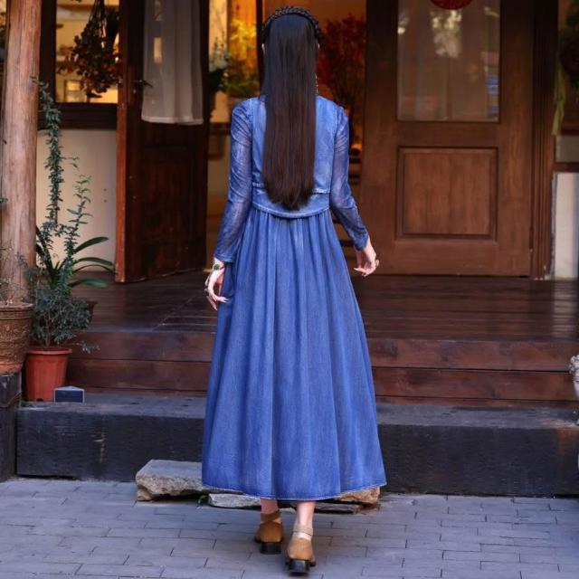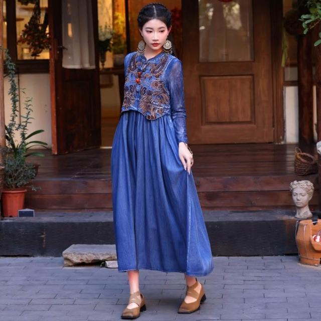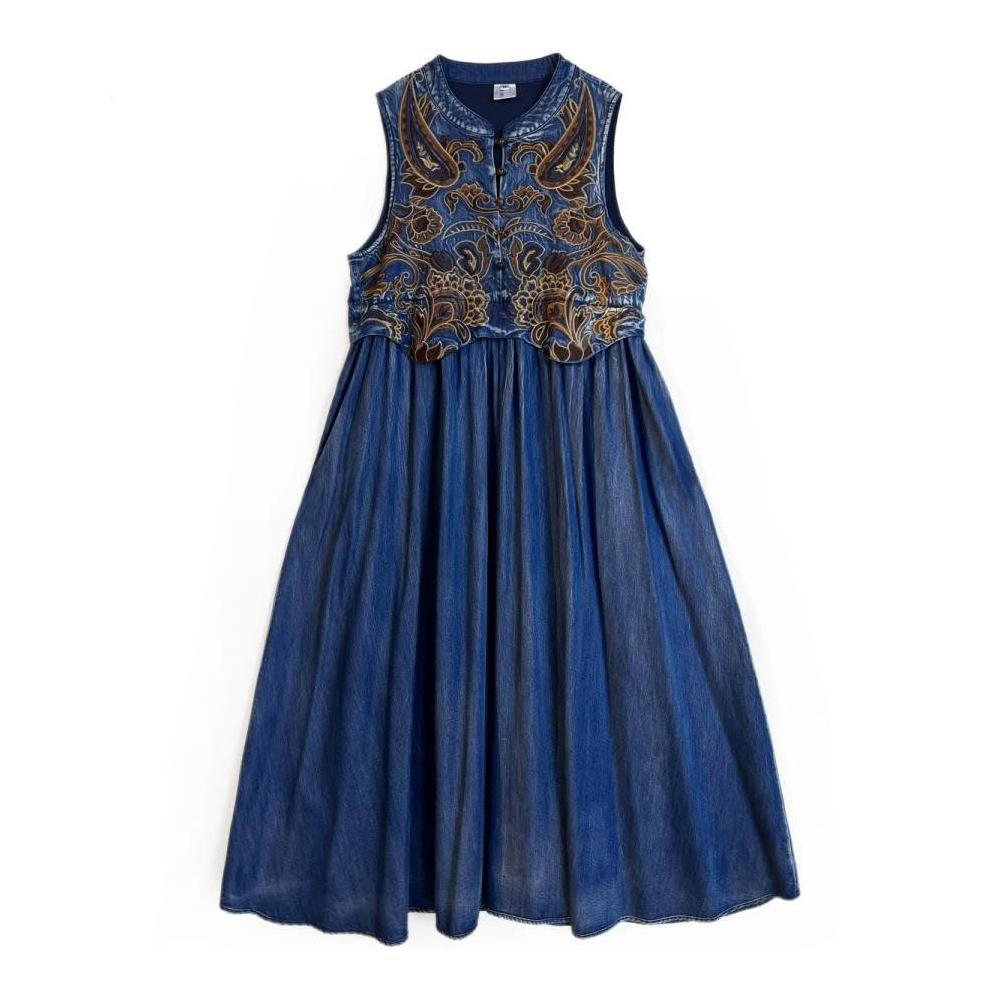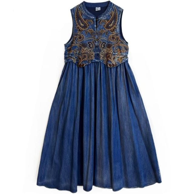 免運2025夏季新款重工刺繡天絲牛仔背心裙民族風無袖連衣裙82665