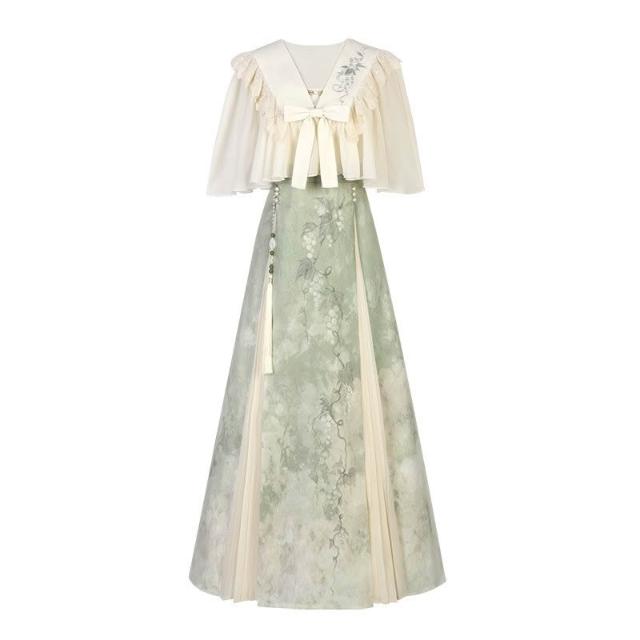 免運2026倚夢閣原創青提詩中國風改良漢元素女外披吊帶裙套裝9069