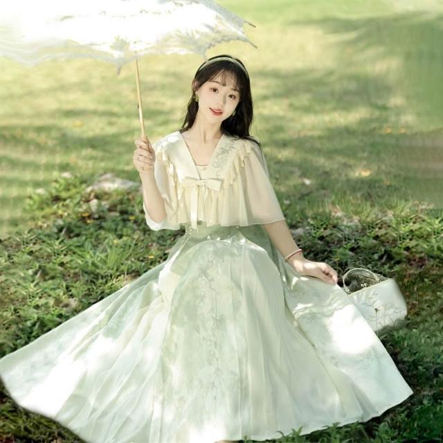免運2026倚夢閣原創青提詩中國風改良漢元素女外披吊帶裙套裝9069