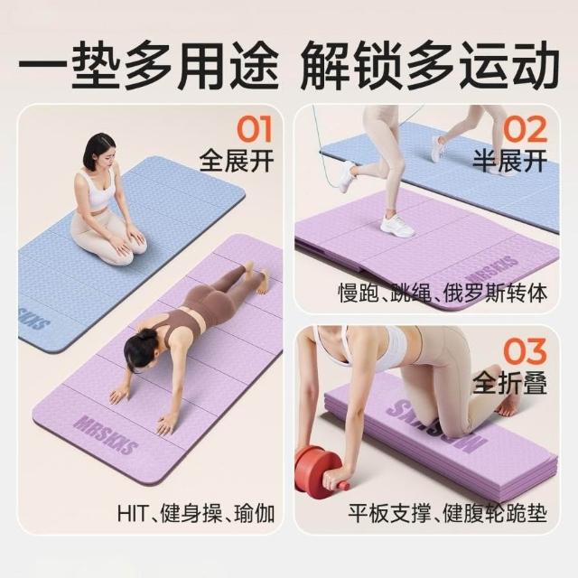 免運八折疊瑜伽墊家用初學者加寬加長健身墊室內加厚舞蹈跳操慢跑