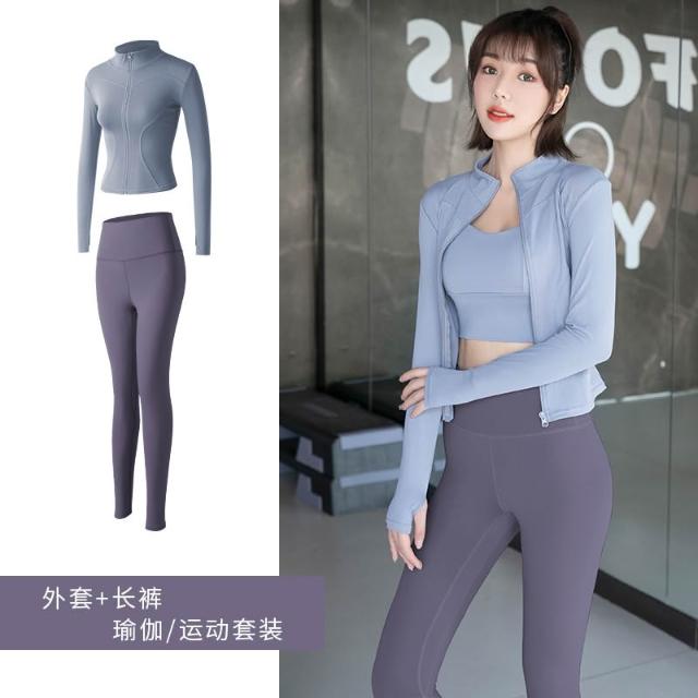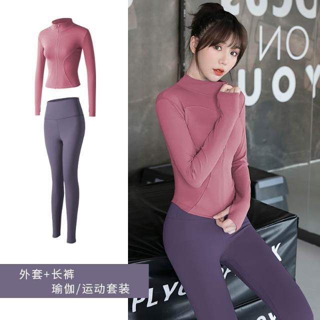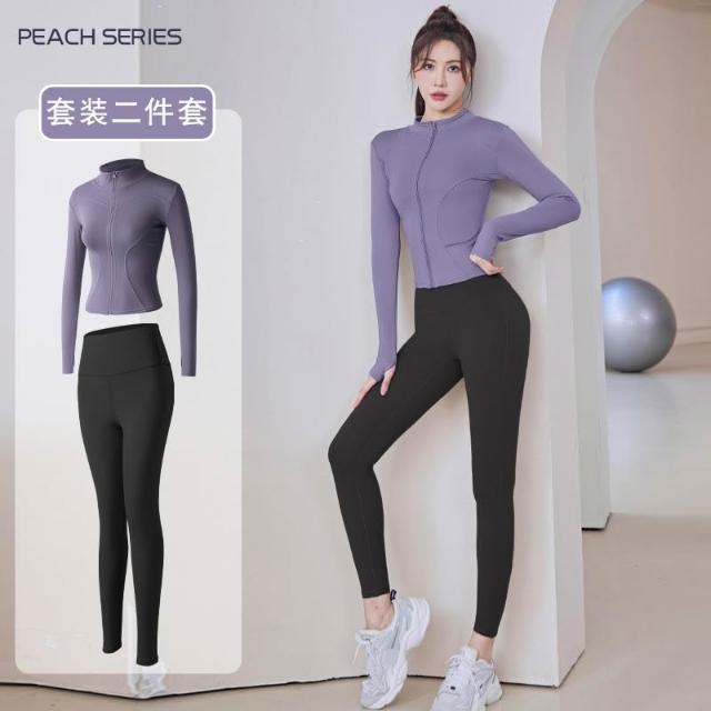 免運聚衣堂運動套裝瑜伽服女健身房緊身衣外套蜜桃晨跑步健身服