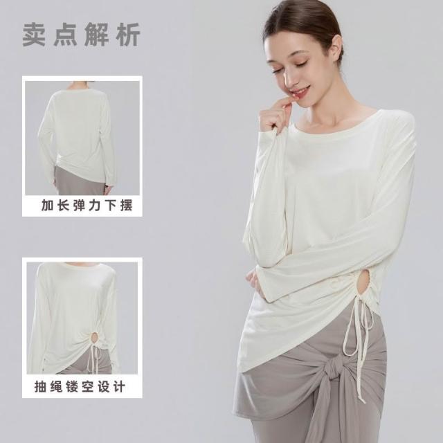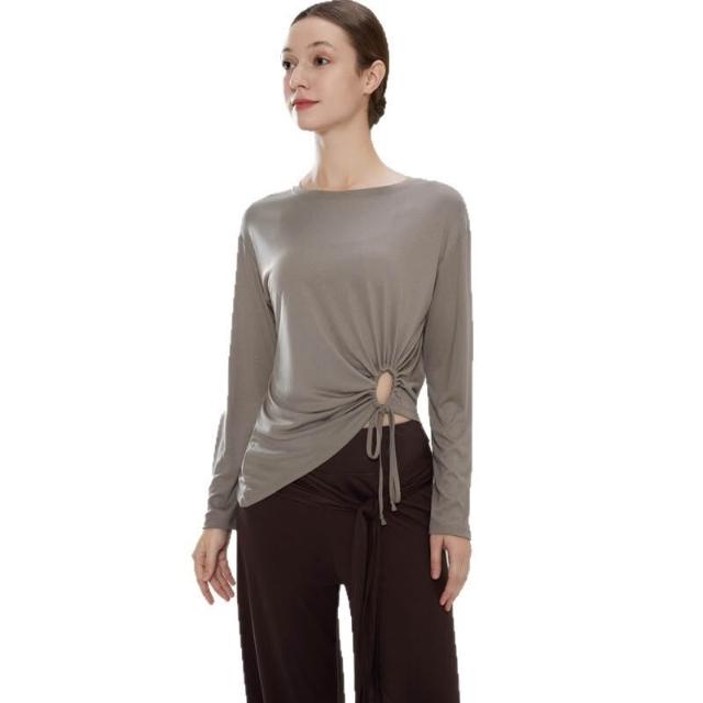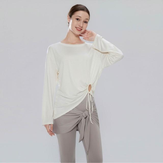 免運新款高彈速干褶皺抽繩收腰瑜伽服普拉提訓練長袖健身服女瑜伽