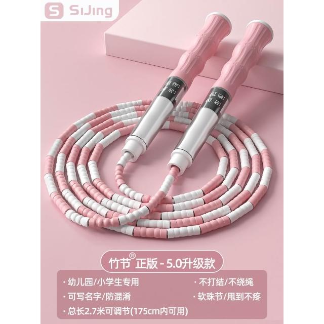 免運專用跳繩標準認證 竹節防纏繞 軟膠手柄2.8米跨境