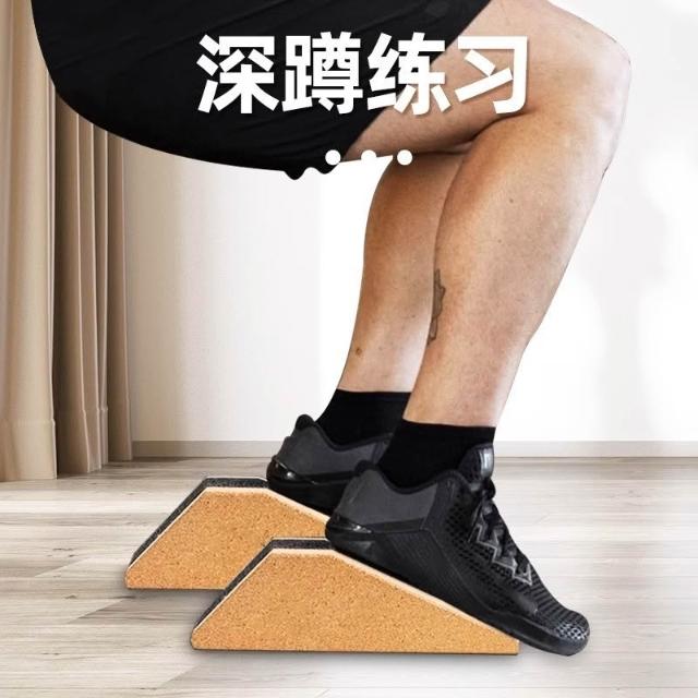 免運瑜伽軟木磚深蹲磚砂紙款楔形磚健身舉重小腿拉伸腳跟抬高坡道
