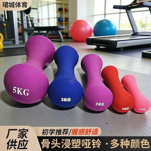 免運女士健身浸塑骨頭啞鈴彩色兒童小啞鈴多功能訓練家用水泥鑄鐵