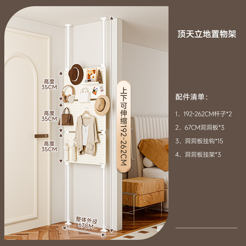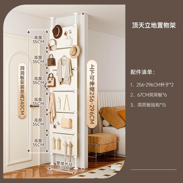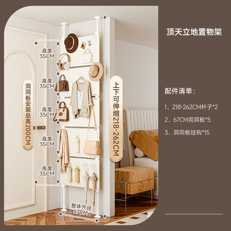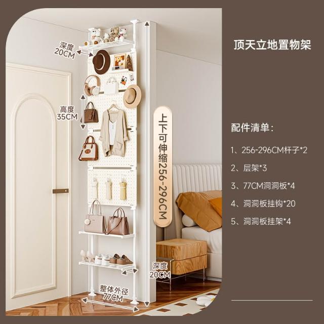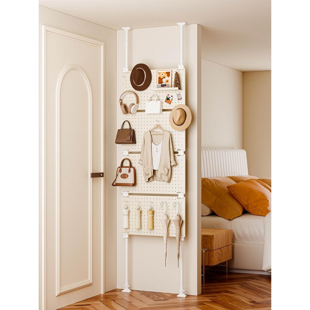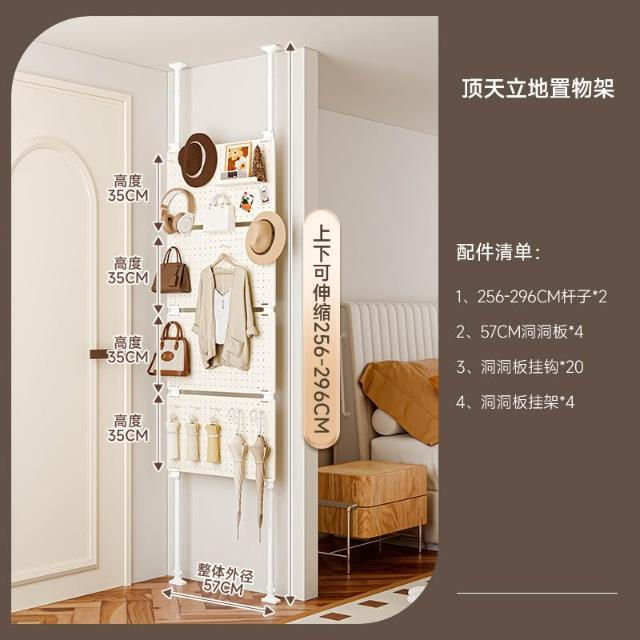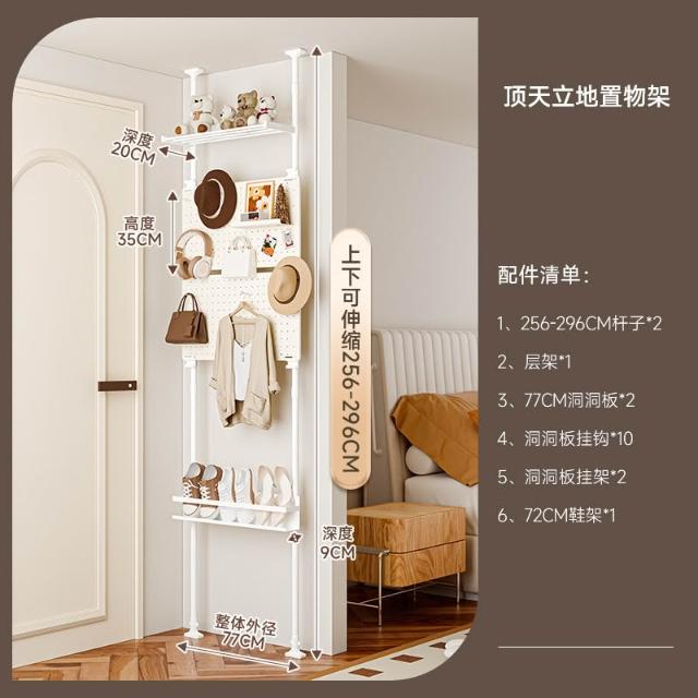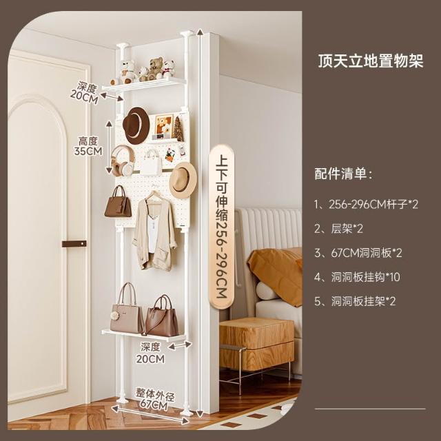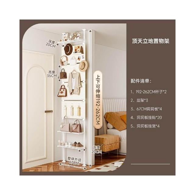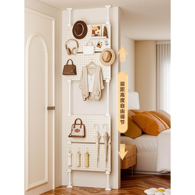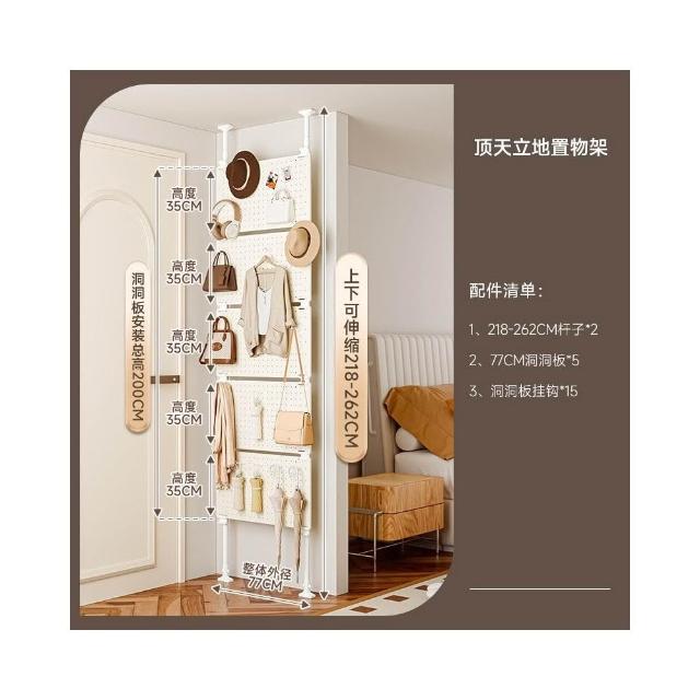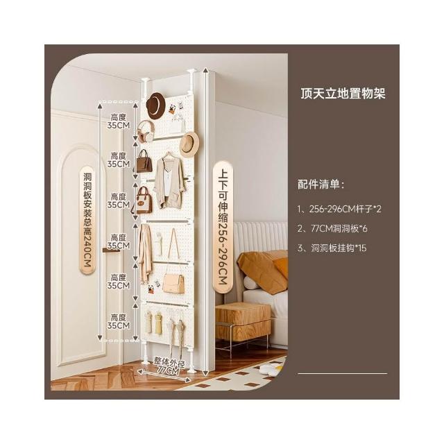 頂天立地置物架 頂天立地衣架 層架 收納架 門後置物架洞洞板入戶玄關頂天立地掛衣架一體隔斷衣帽架薄免打孔