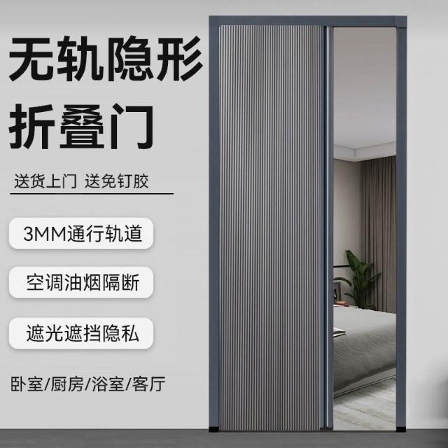 隱形門簾 隔斷 摺疊門 無軌摺疊推拉門簾窗簾空調隔斷簾廚房衣櫃雜物臥室衛生間遮擋門簾