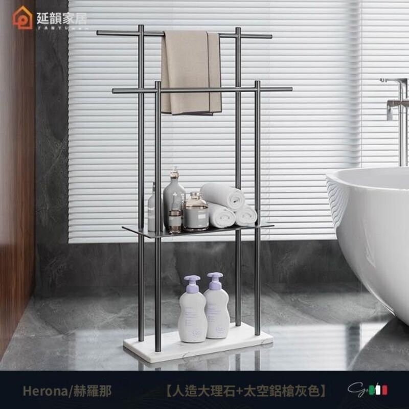 浴室置物架 浴室收納架 毛巾架 槍灰落地大理石浴巾架衛生間掛衣桿浴室浴缸旁置物架立式毛巾掛架