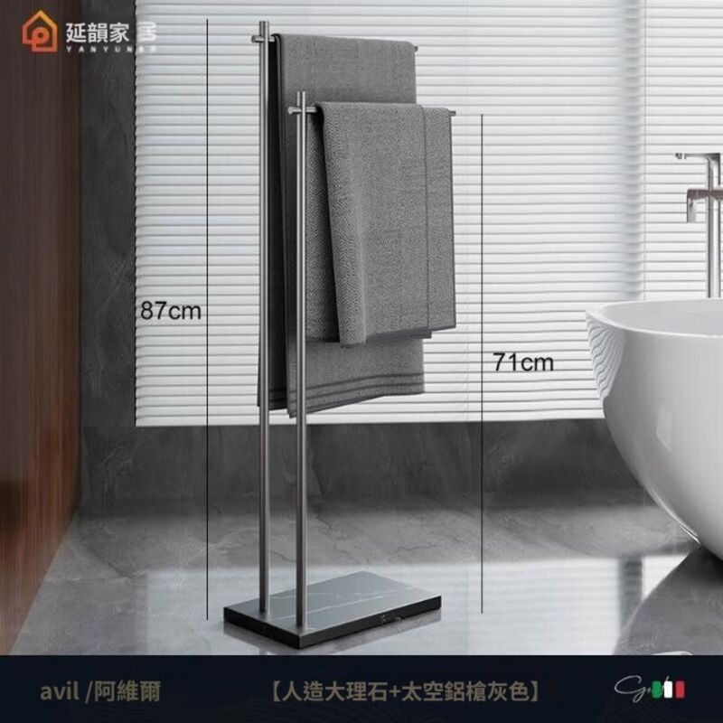 浴室置物架 浴室收納架 毛巾架 槍灰落地大理石浴巾架衛生間掛衣桿浴室浴缸旁置物架立式毛巾掛架
